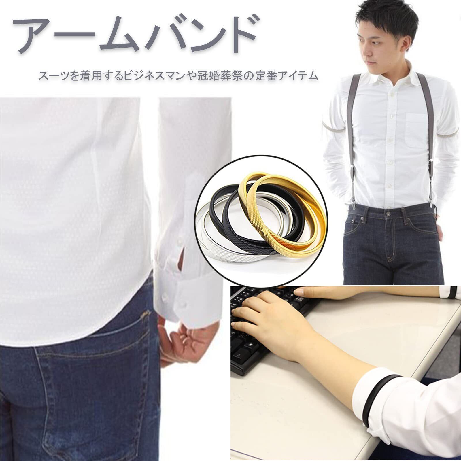 【おしゃれのデザイン、簡単に袖丈が合わないのことを解決!】 アームバンドはワイシャツなどの袖の長さを調整いただき、自宅で洗い物をする時、袖の調整も便利です。自転車を乗る時、スラックスなどの裾に巻いても、裾が汚れ防止にもなります。ワンポイントのお洒落アイテムとして、ブレスレット感覚での着用もお勧め、ファッションの小物アイテムとしてもお使い頂けます。それゆえにアームバンドは欠かせない品となります。