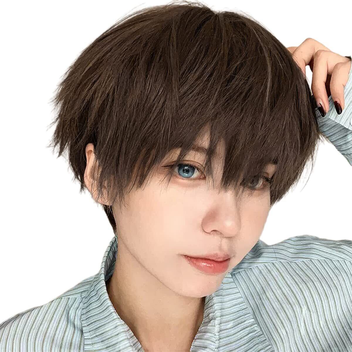FORCUTEUウィッグ メンズ ショート ブラウン フルウィッグ 茶髪 男性 自然 コスプレ ファッション 人気 日常 耐熱 ネット/櫛付き
