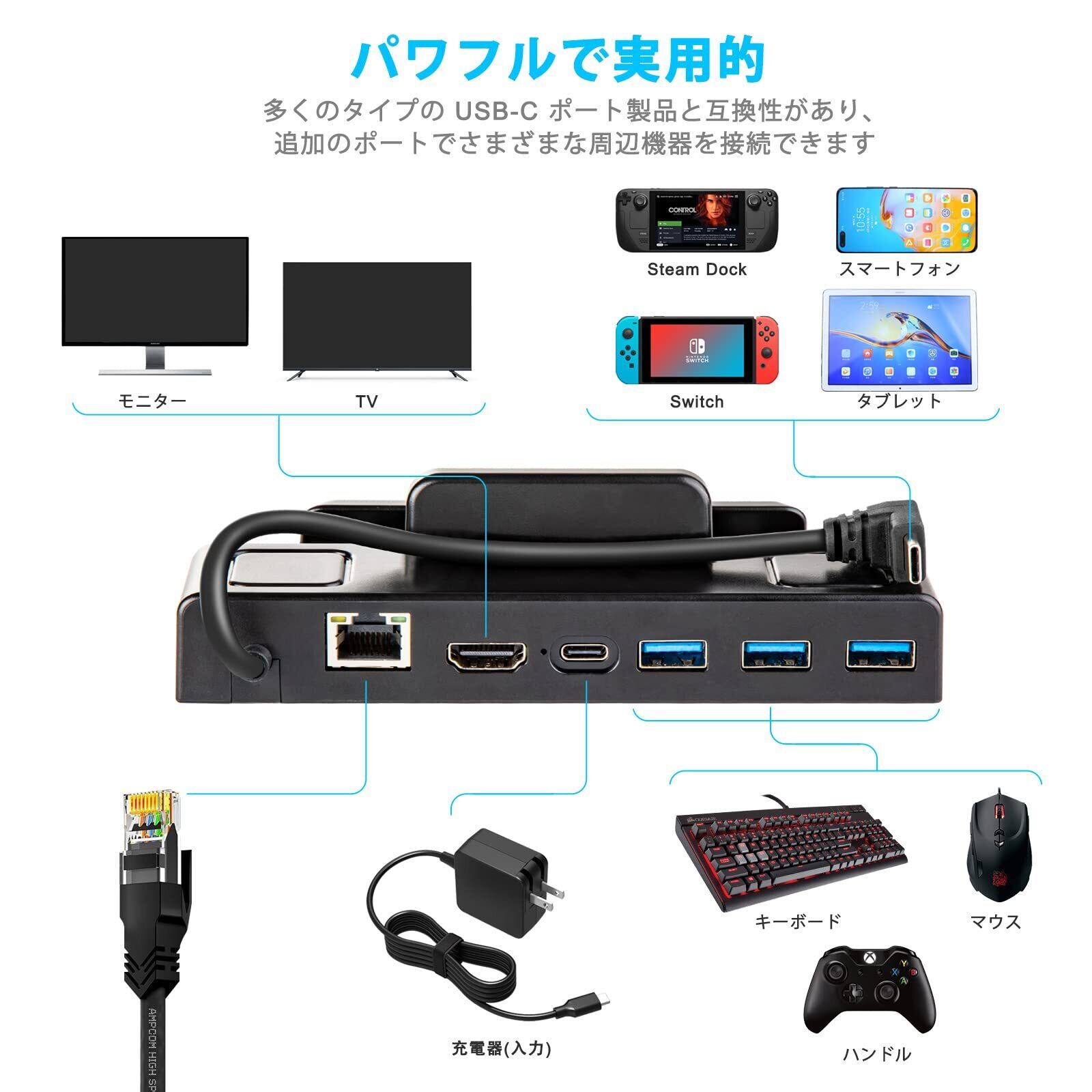 Steam deck/Steam Deck OLED/ASUS Rog Ally用TVドック HDMI出力 Iesooy充電スタンド 6 in 1ミニドック 三つのUSBポート& LAN ポート 放熱対策 スチームデッキ対応 軽量 持ち運び便利 【4K1080p対応】