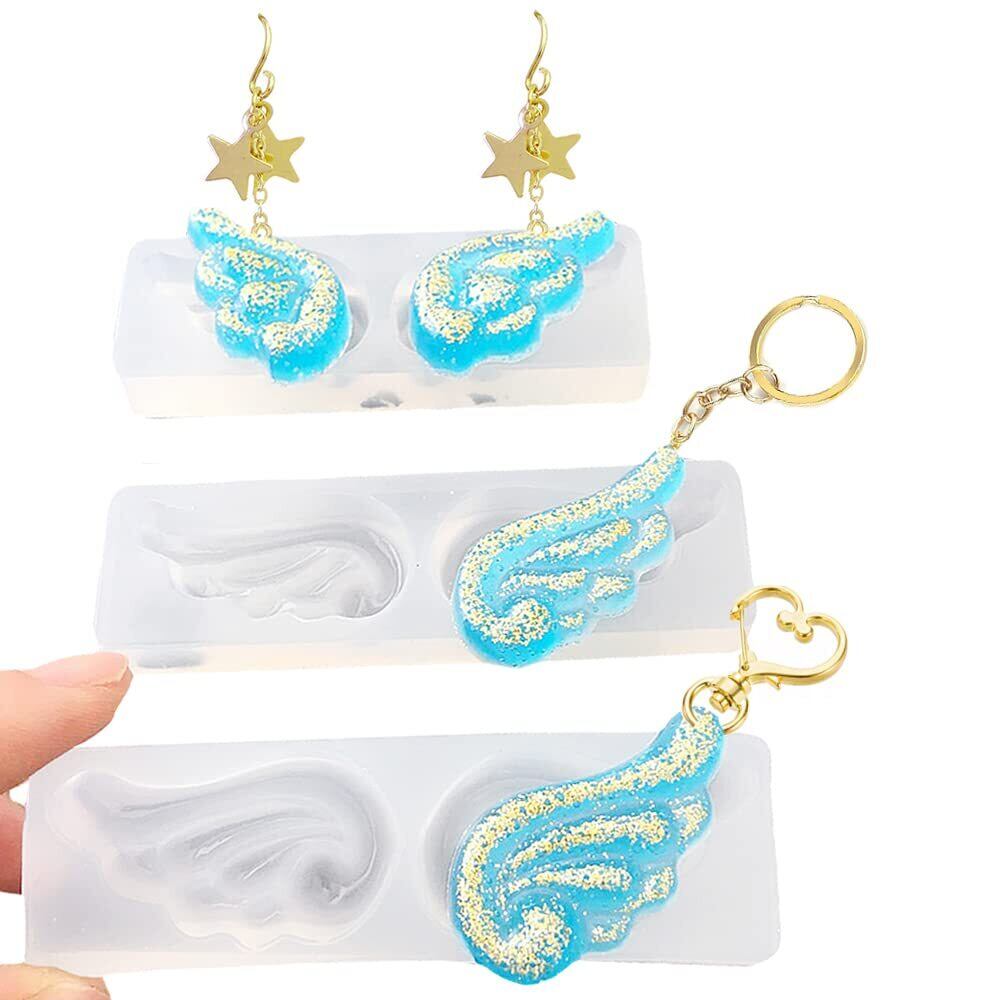 サムコス 羽 シリコンモールド 3個セット 天使 翼形 羽根 UVレジン エポキシ樹脂 レジン モールド DIY 手作り アクセサリー キーホルダー ネックレス 装飾 再利用可能 (L)