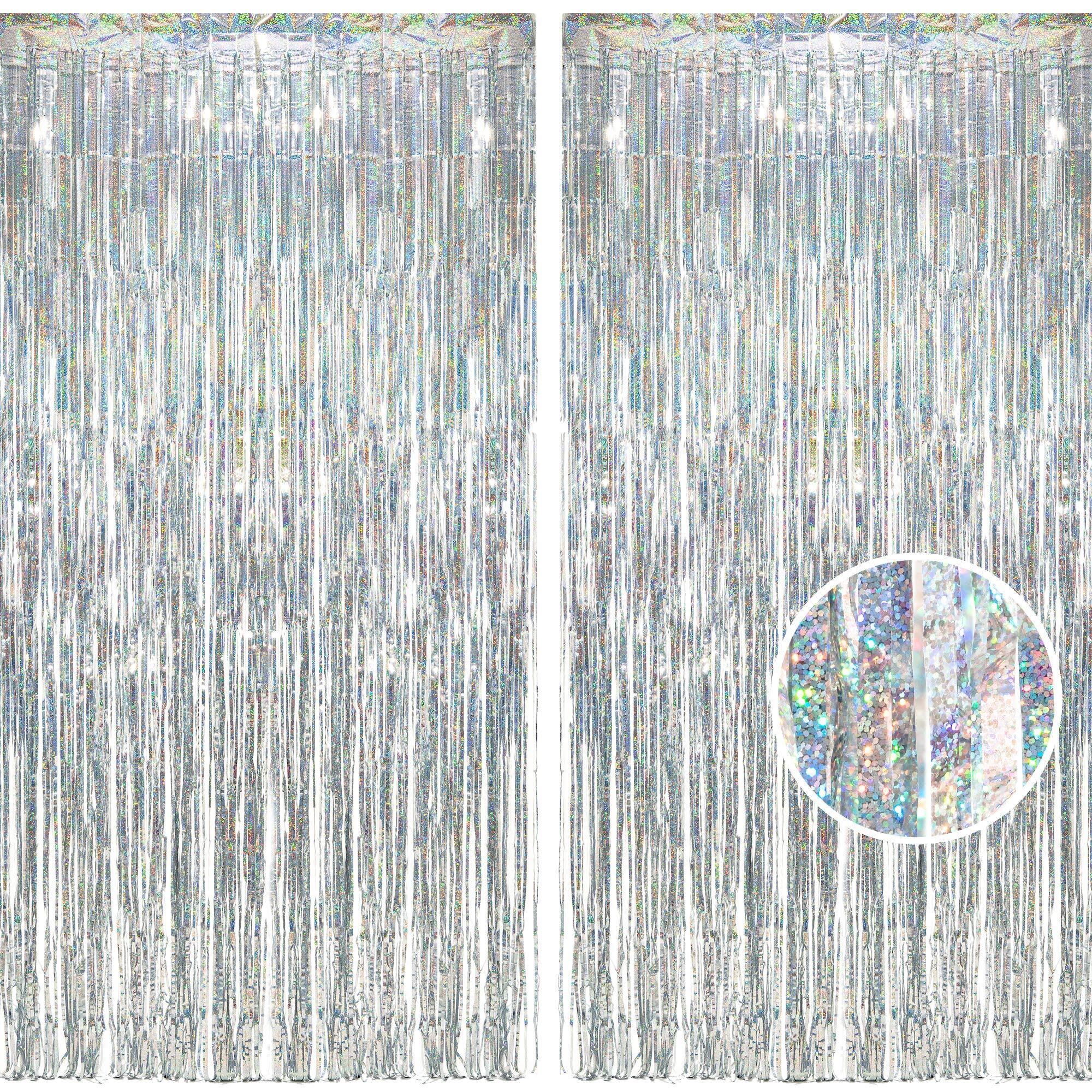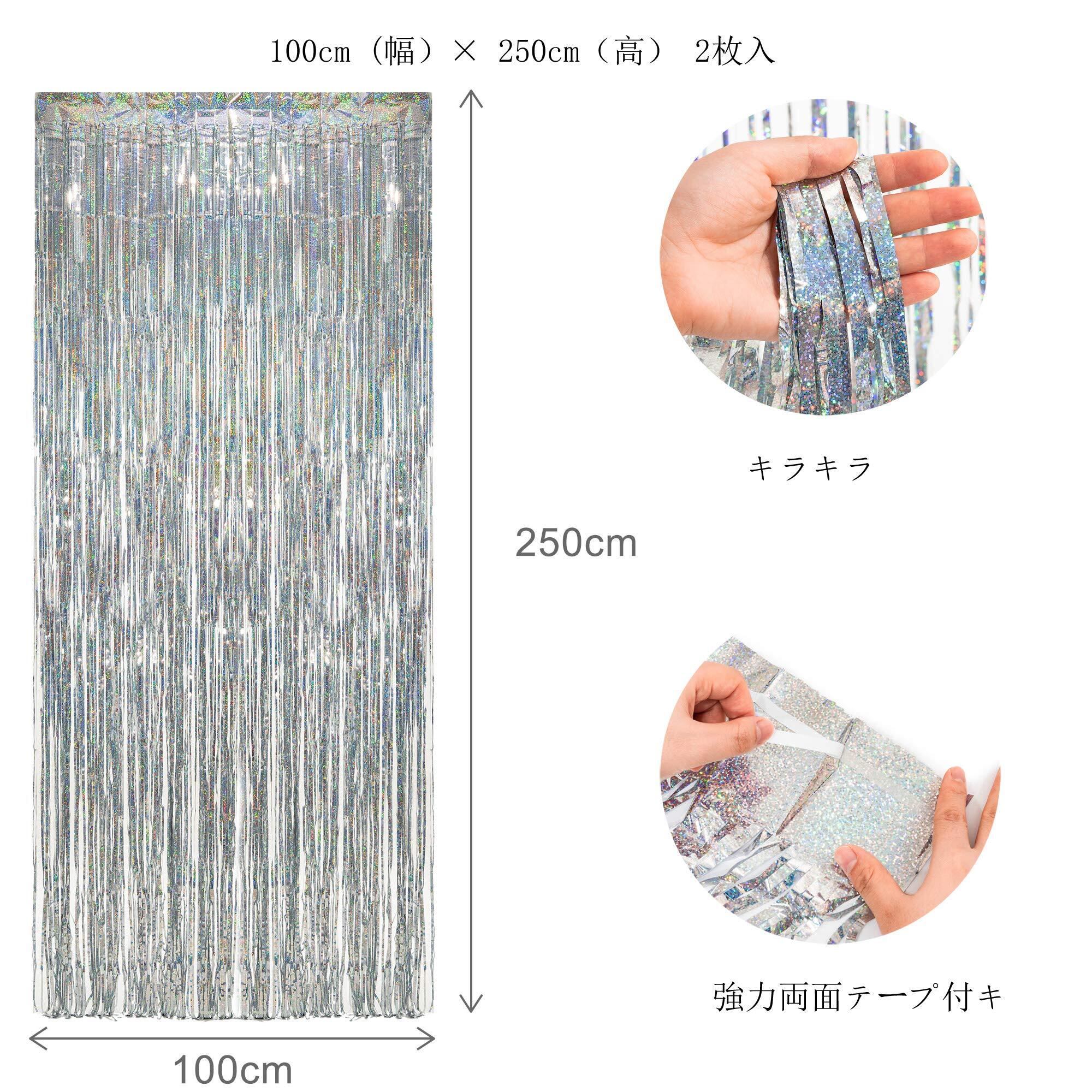 2個セット BRAVESHINE タッセルカーテン キラキラ 背景 明るい光沢 誕生日 クリスマス 飾り付け 100cm*250cm 誕生日 飾り カーテン birthday decorations パーティー デコレーション party decoration (銀色)