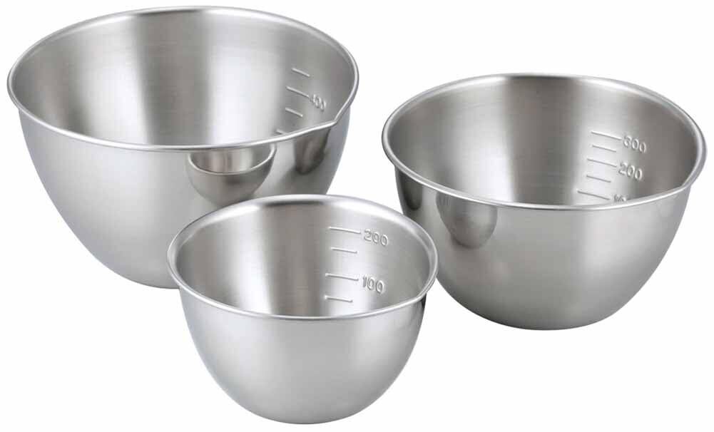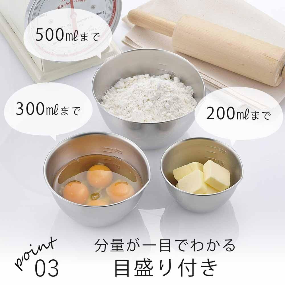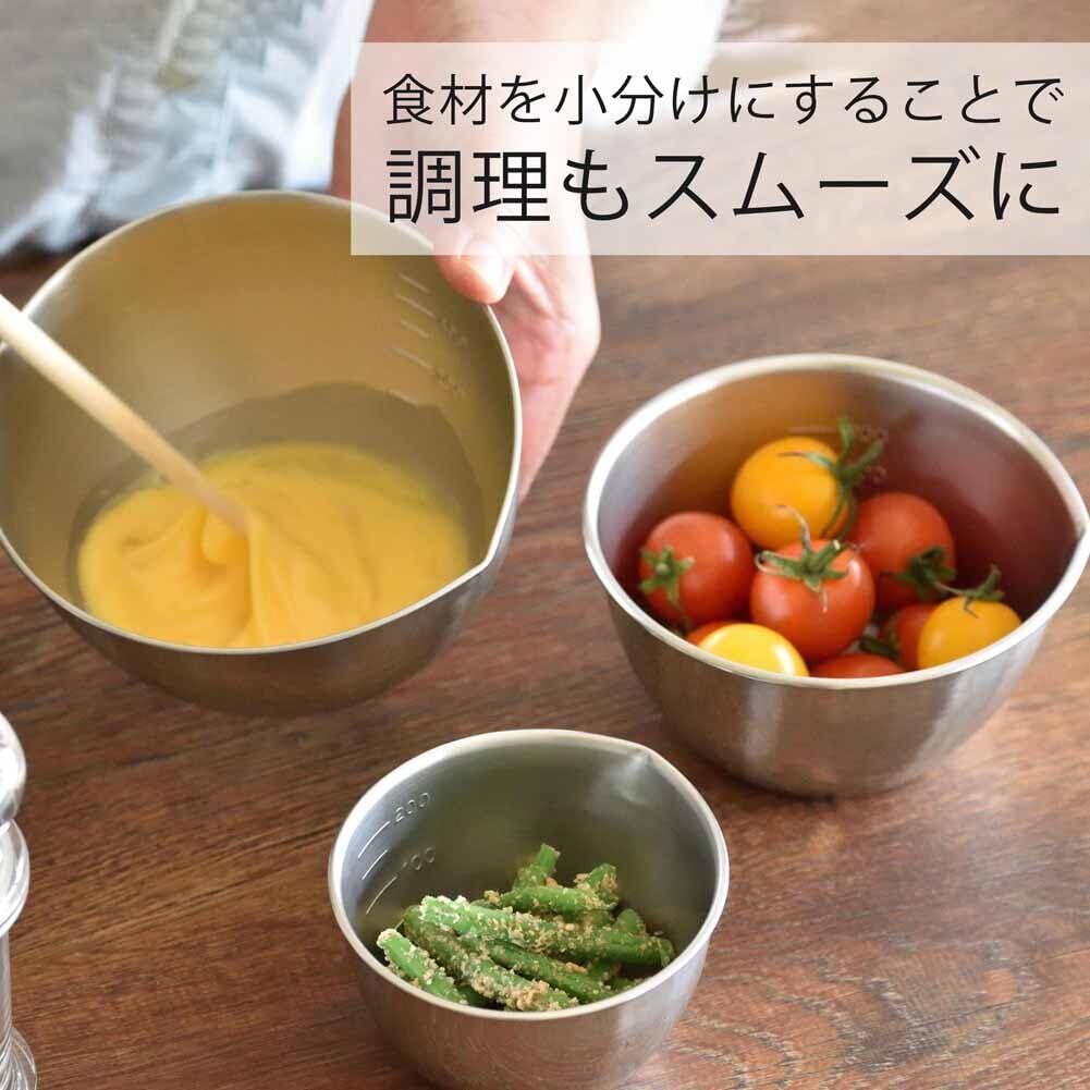 下村企販 ボウル 13/11/9cm 3点セット 【日本製】 注ぎ口付き 目盛付き 食洗機対応 270ml/520ml/750ml 下ごしらえに便利 小分け ボール 容器 ステンレス 29131 燕三条