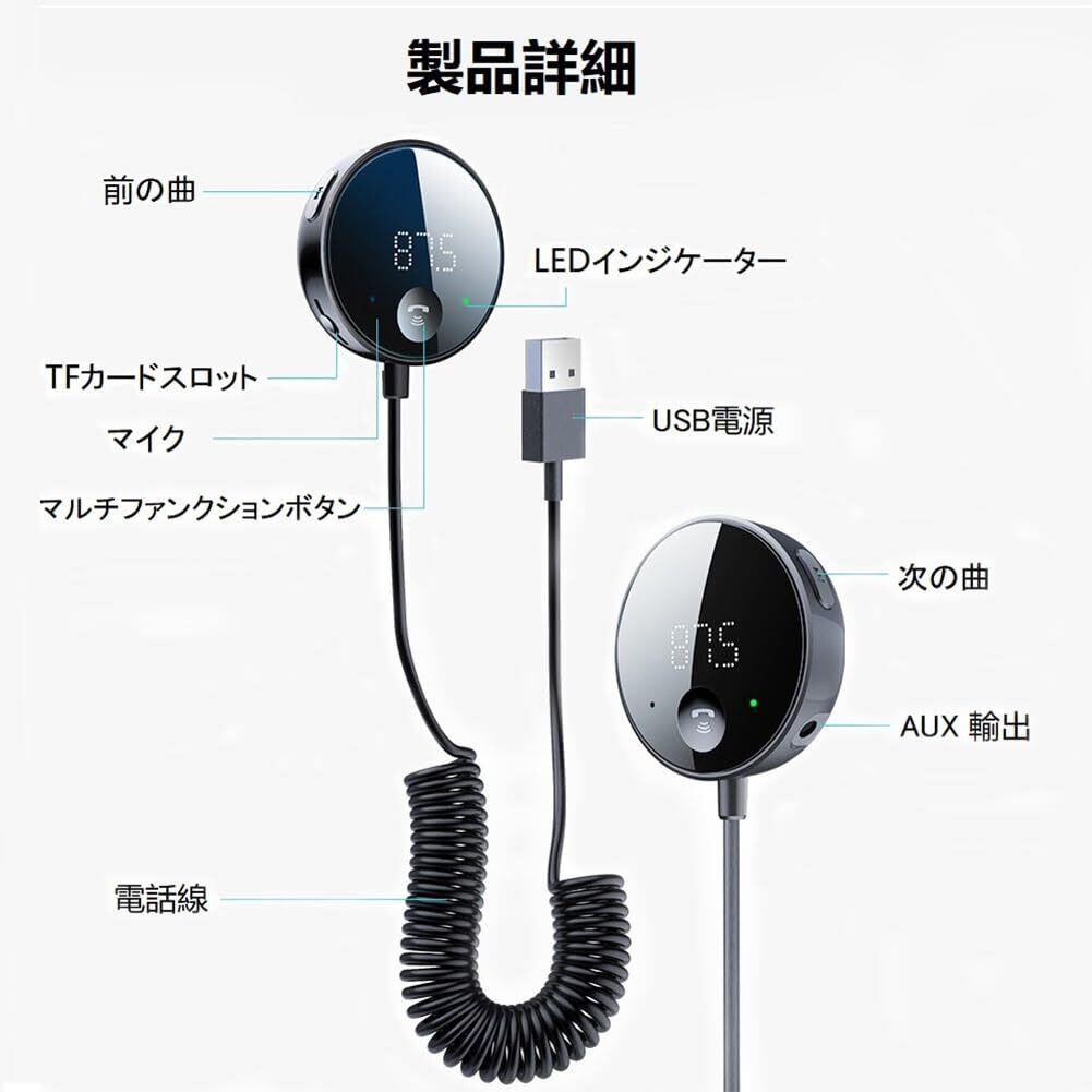 eppfun FMトランスミッター & Bluetooth 車載レシーバー Aux 対応 USB 電力供給 ハンズフリー通話対応 microSDカードに対応 音楽再生 車載スピーカー/ホームステレオ 用