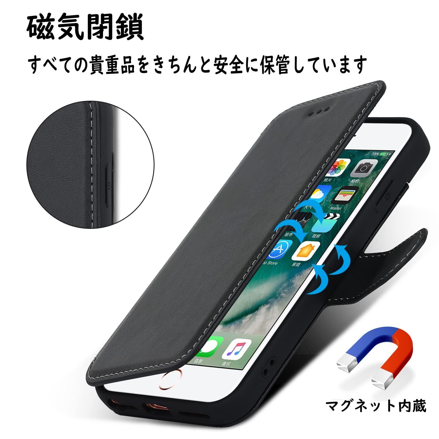 Havaya iPhone SE3 ケース iPhone SE2 ケース iphone8 ケース 手帳型 ストラップ 2022 2020 米軍MIL規格 軽薄 第3世代 第2世代 耐衝撃 レンズ保護(アイフォンSE3 /あいふぉんSE2/いphone8/アイホン7/アイフォン6/6s 4.7インチ対応)-ブラック