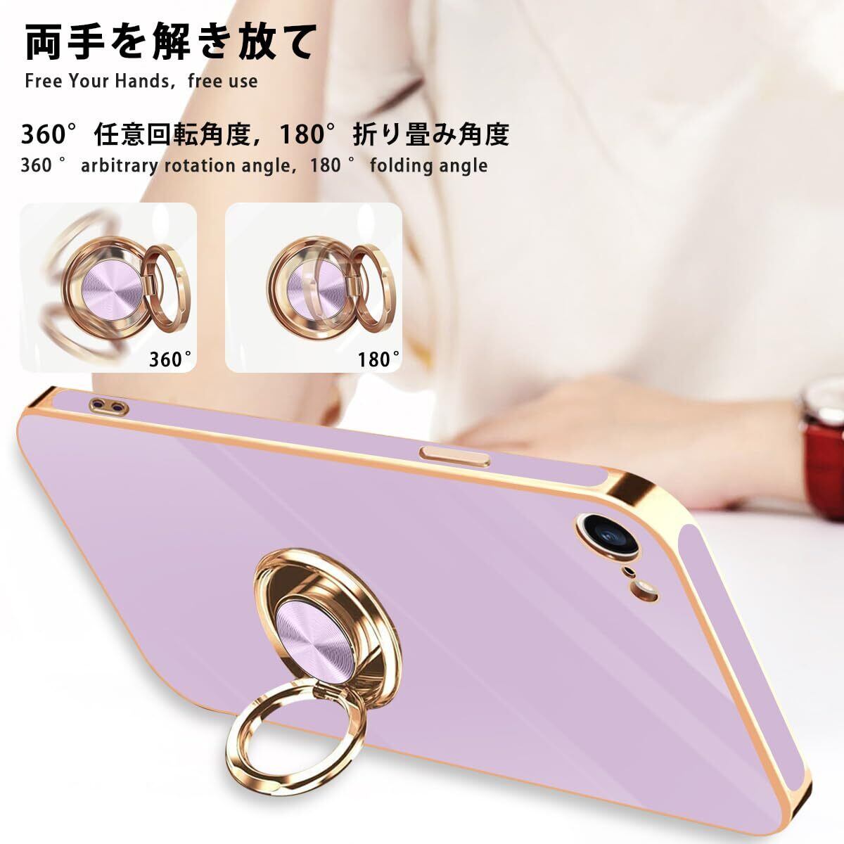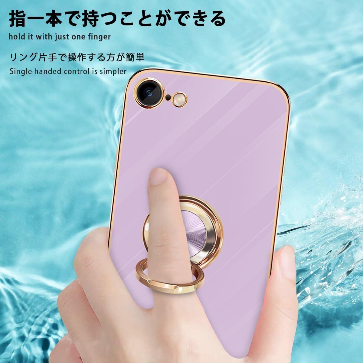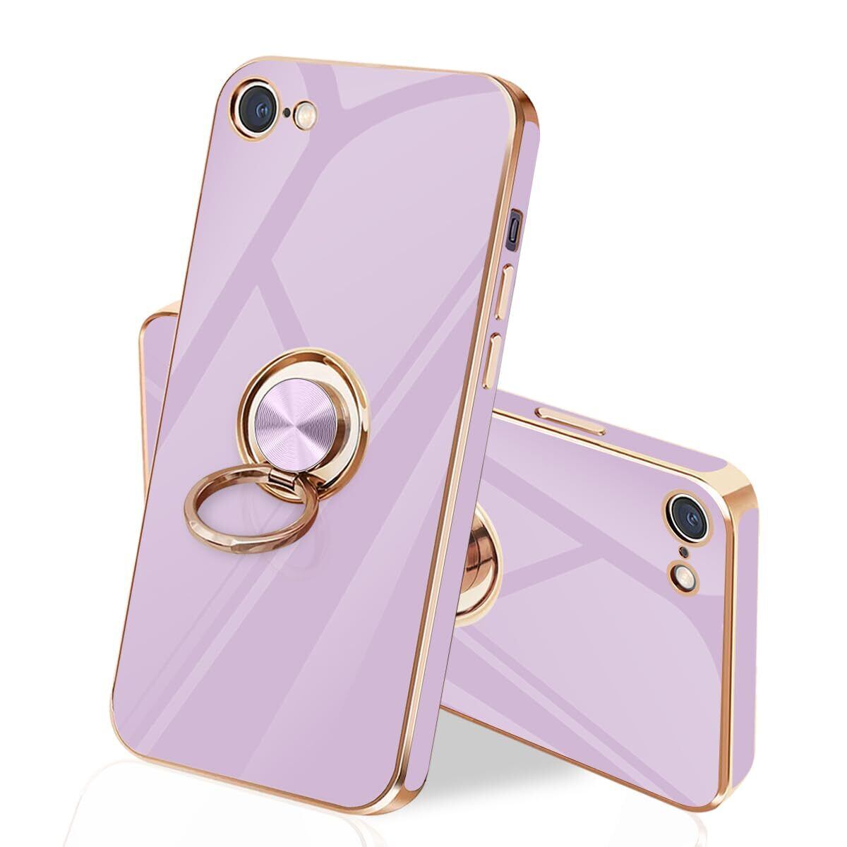 iPhone SE ケース iPhone第3世代 ケース iPhone第2世代 ケース iPhone8/7 ケース リング 耐衝撃 360°回転 スタンド機能 車載ホルダー対応 アイフォン SE3/SE2 ケース 一体型 携帯ケース 保護カバー レンズ保護 ストラップホール付き 4.7インチ (パープル)
