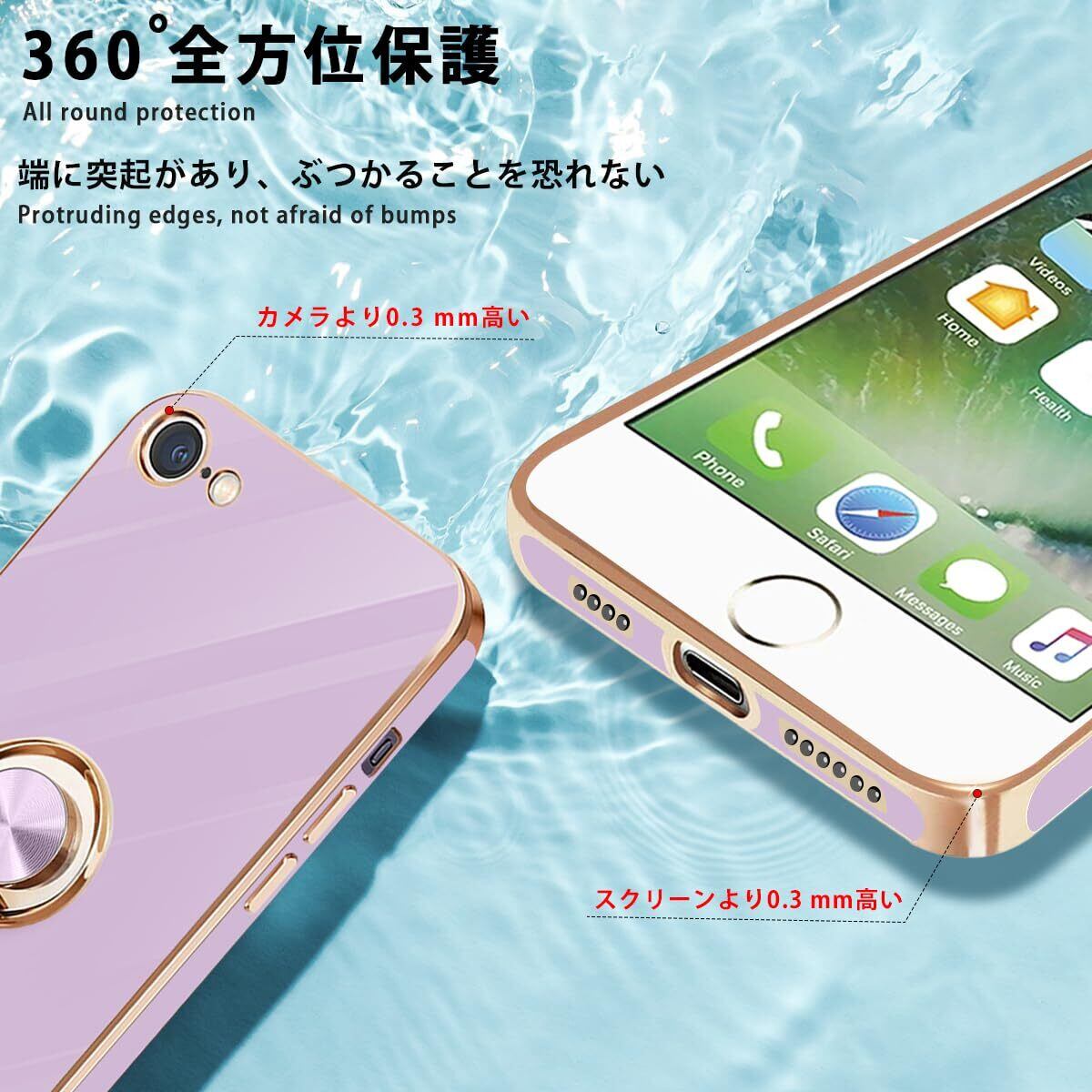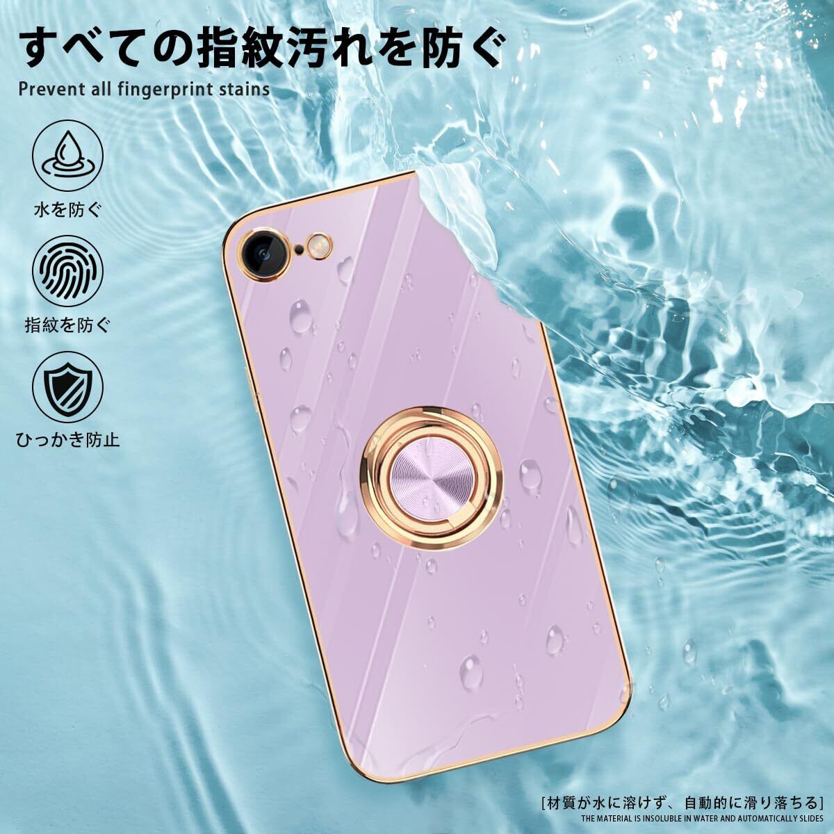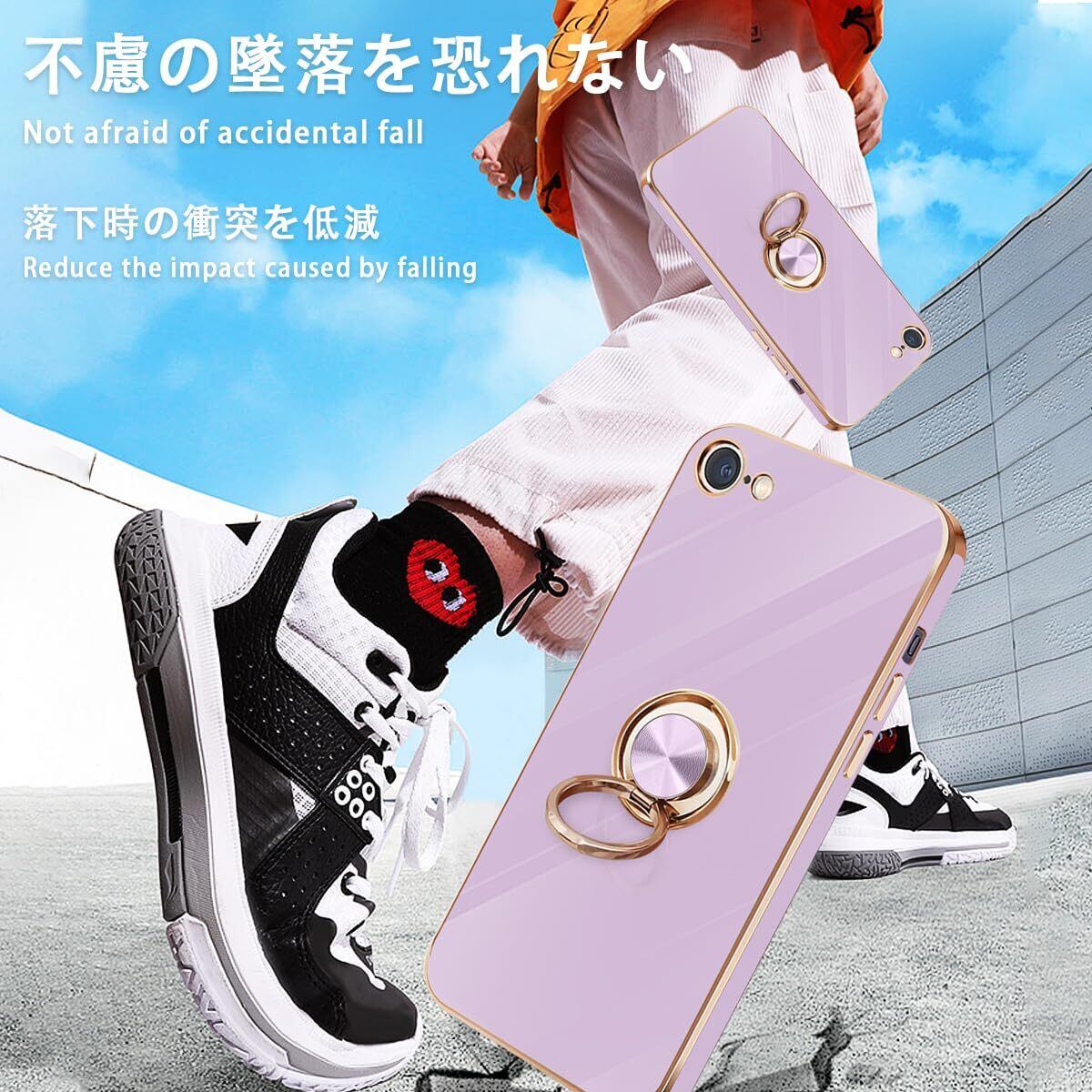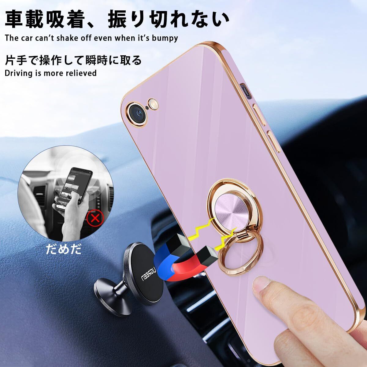 iPhone SE ケース iPhone第3世代 ケース iPhone第2世代 ケース iPhone8/7 ケース リング 耐衝撃 360°回転 スタンド機能 車載ホルダー対応 アイフォン SE3/SE2 ケース 一体型 携帯ケース 保護カバー レンズ保護 ストラップホール付き 4.7インチ (パープル)