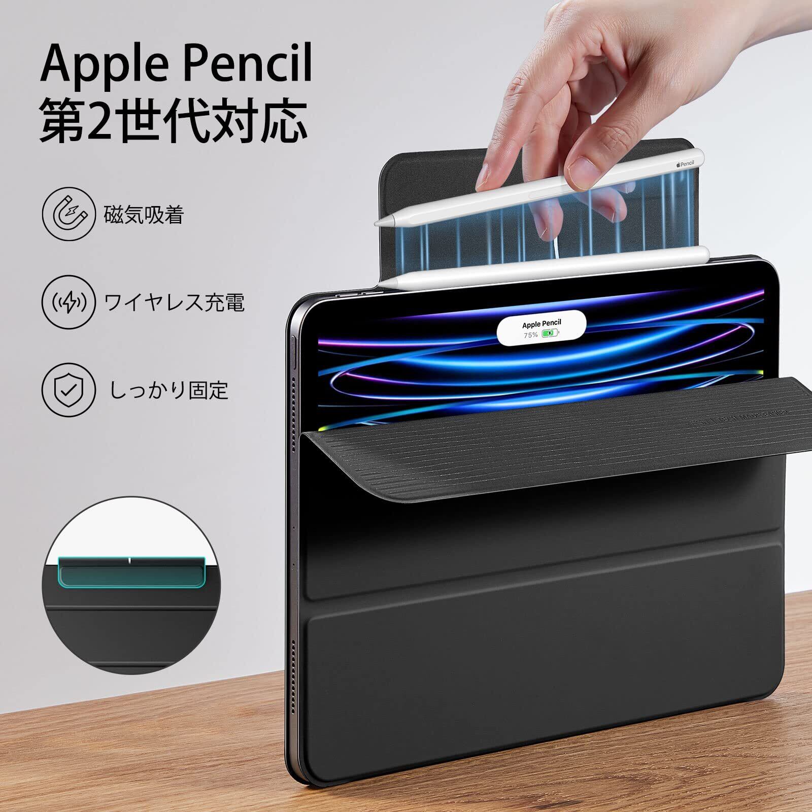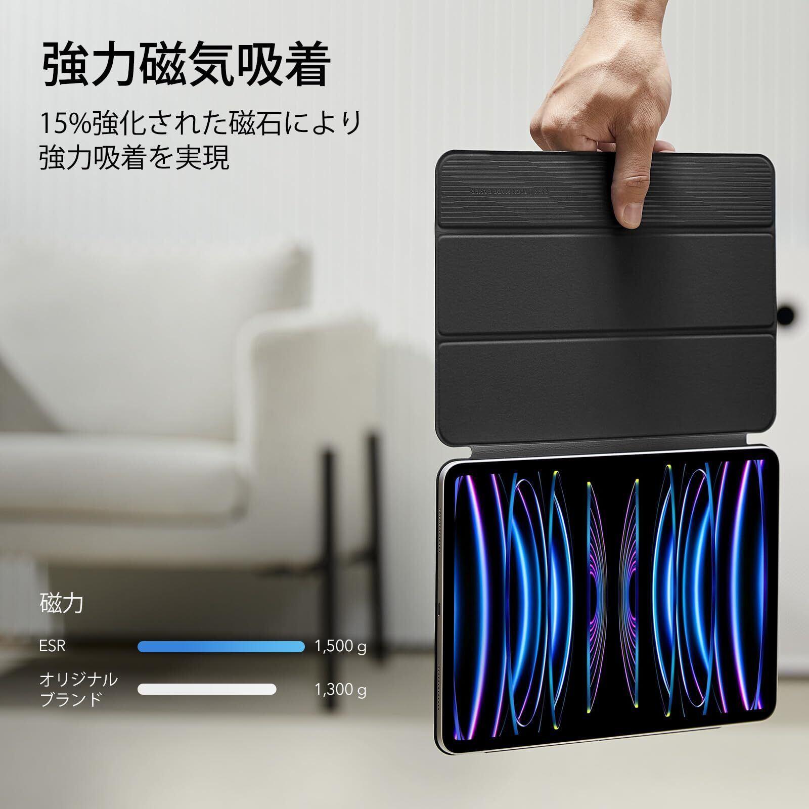 ESR iPad Pro 11インチ ケース 第4/3/2世代(2022/2021/2020)に適用 マグネット吸着式 iPad Pro 11インチ カバー Pencil 2対応 三つ折スタンド オートスリープ/ウェイク機能 磁気吸着 Rebound Series ブラック
