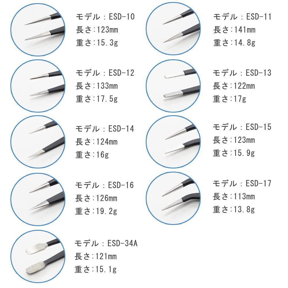 【精密ピンセット内容】9個セット。ESD-10、ESD-11、ESD-12、ESD-13、ESD-14、ESD-15、ESD-16、ESD-17、ESD-34A。収納袋付き。