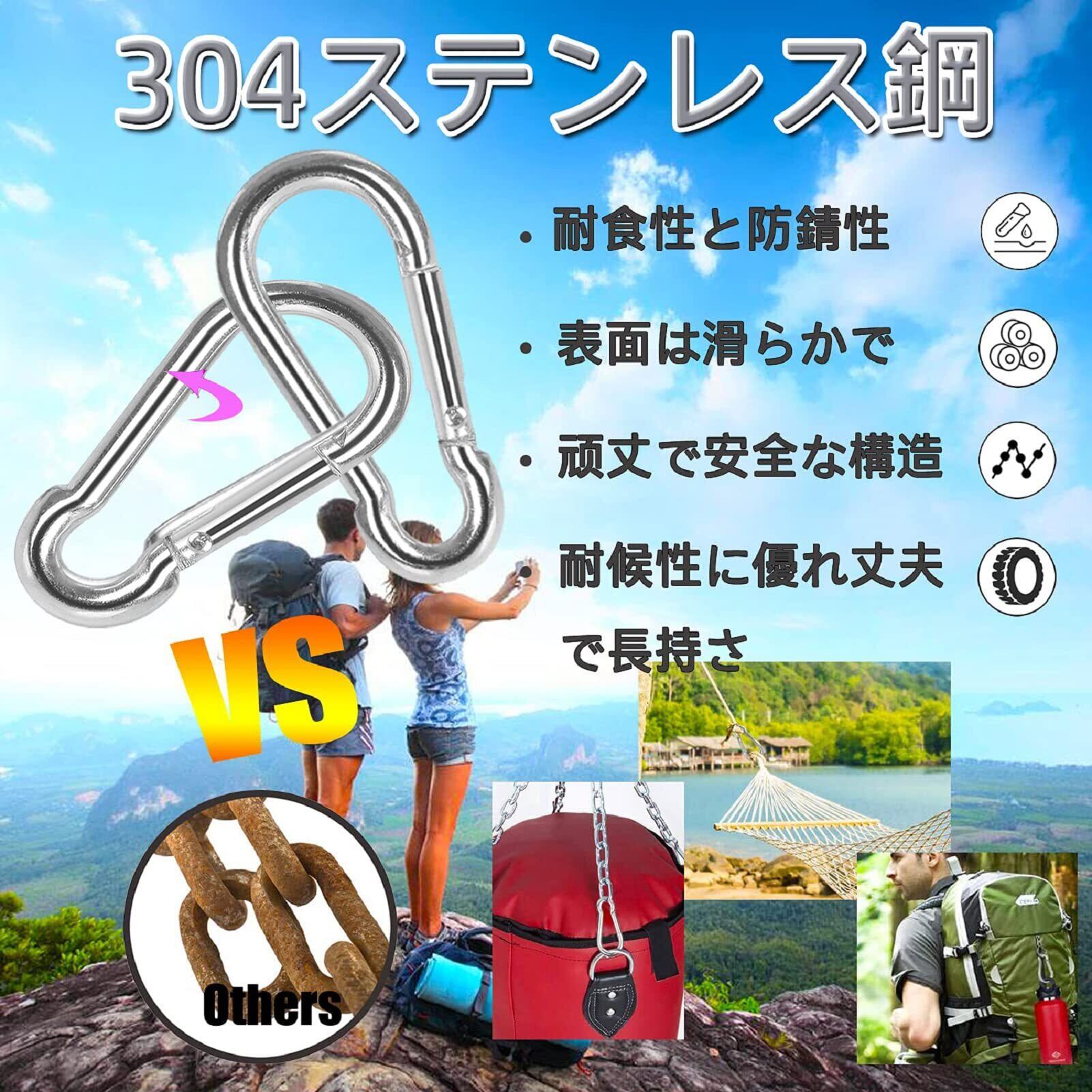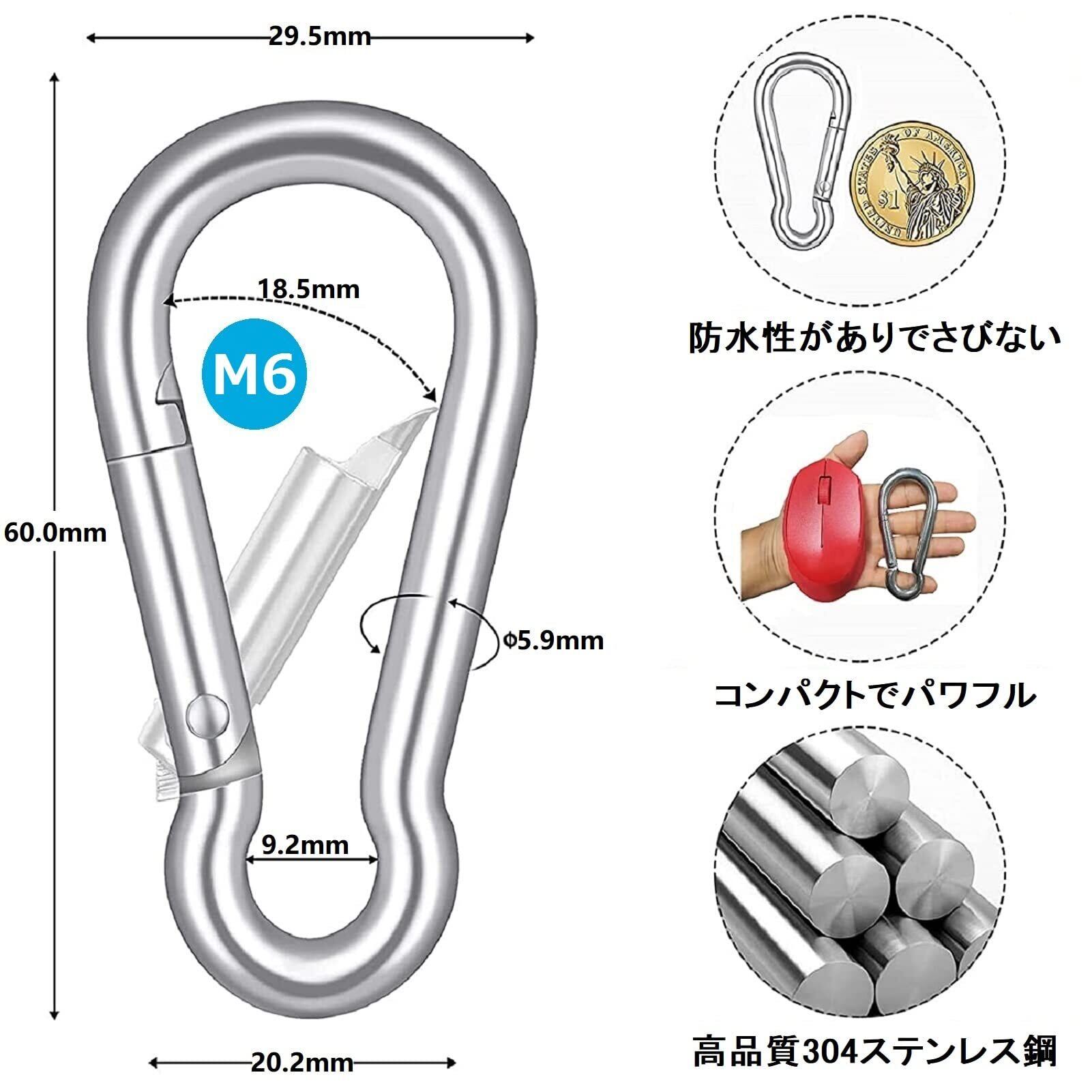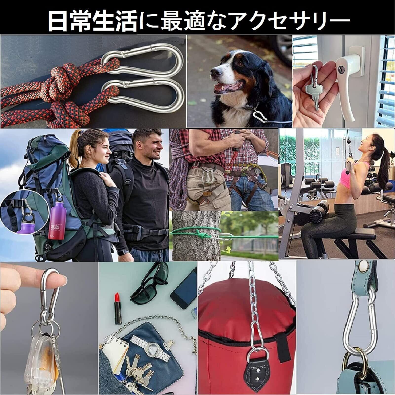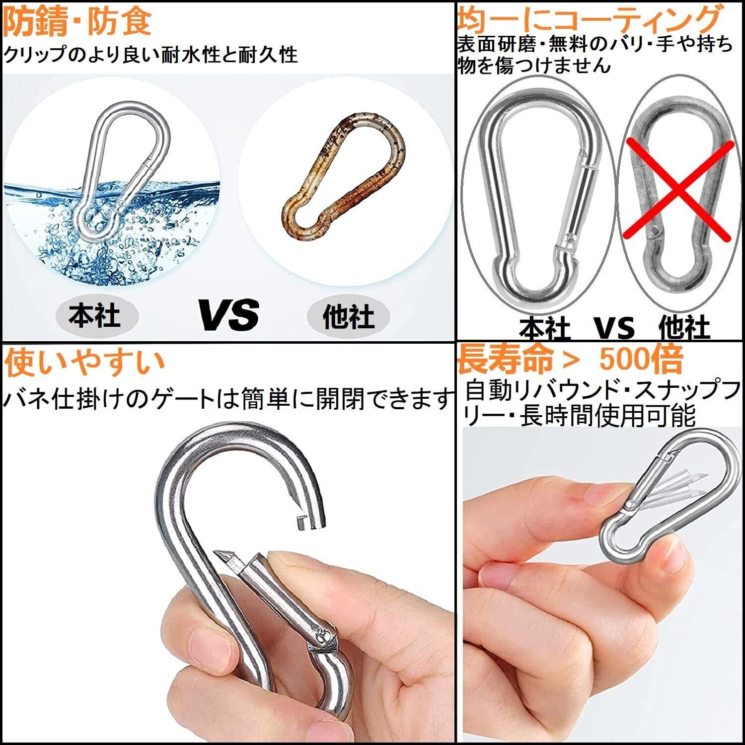 【優れた品質】優れた耐食性の304ステンレス製、耐候性。タフ、丈夫、クリーン、なめらか。錆が出ない、安全で信頼できます。雨の中でも自由に使えます。このカラビナは、ストラップ、ホース、およびいくつかの屋外旅行機器などに非常に適しています。