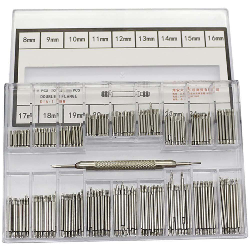 【商品仕様】腕時計バネ棒144個/セット;バネ取り外し棒*1;材質:高品質ステンレス製;18種類サイズ(8mm~25mm/8個ずつ)