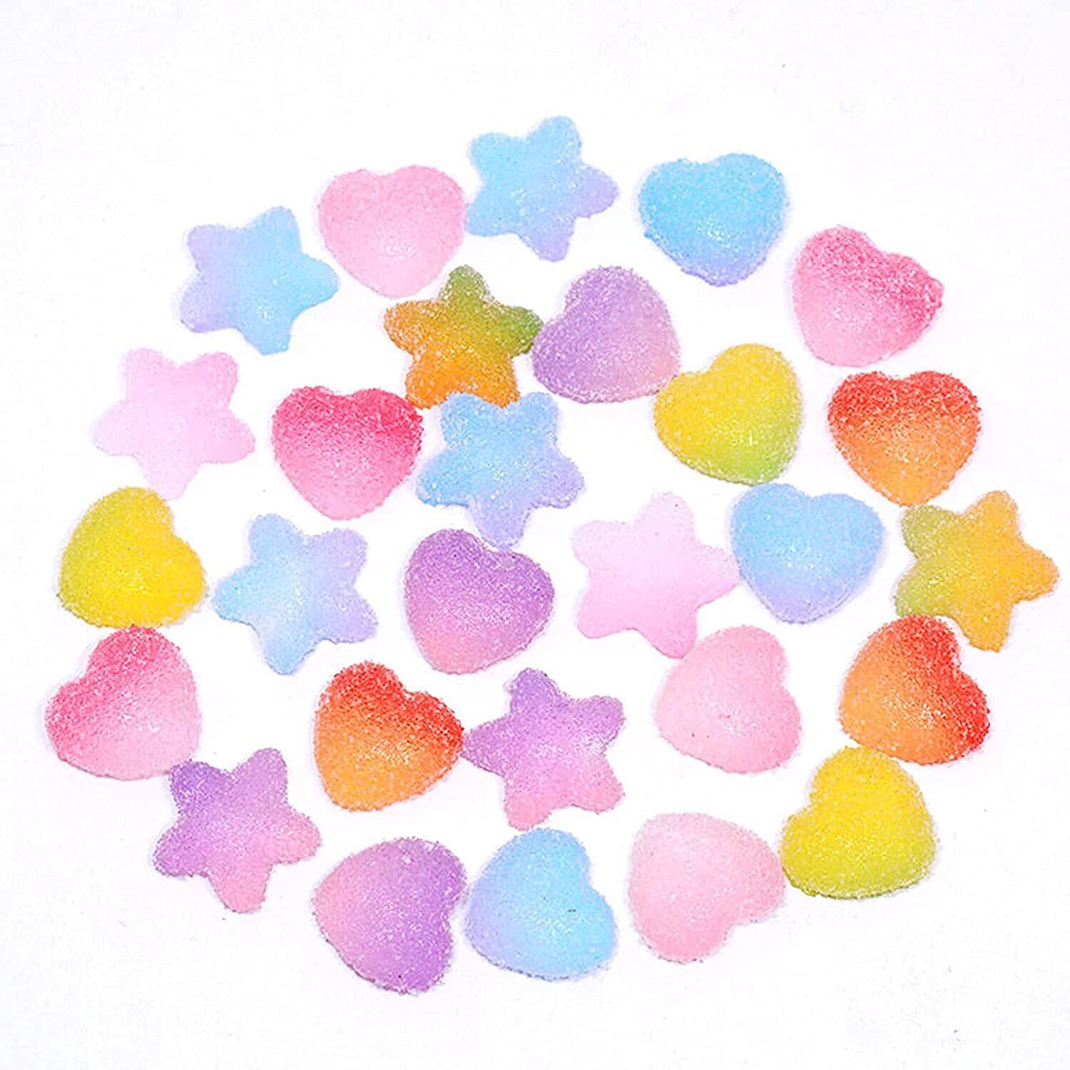 ハンドメイド キラキラ グミ キャンディー DIY手芸材料 デコパーツ ソフト ハート形 星形 デコ素材 材料 装飾品 60個セット (星形,ハート形) スマホケース ヘアアクセサリー デコレーション バッグ 財布 クラフト用 飾り物 装飾品 アクセサリーパーツ ハンドメイド