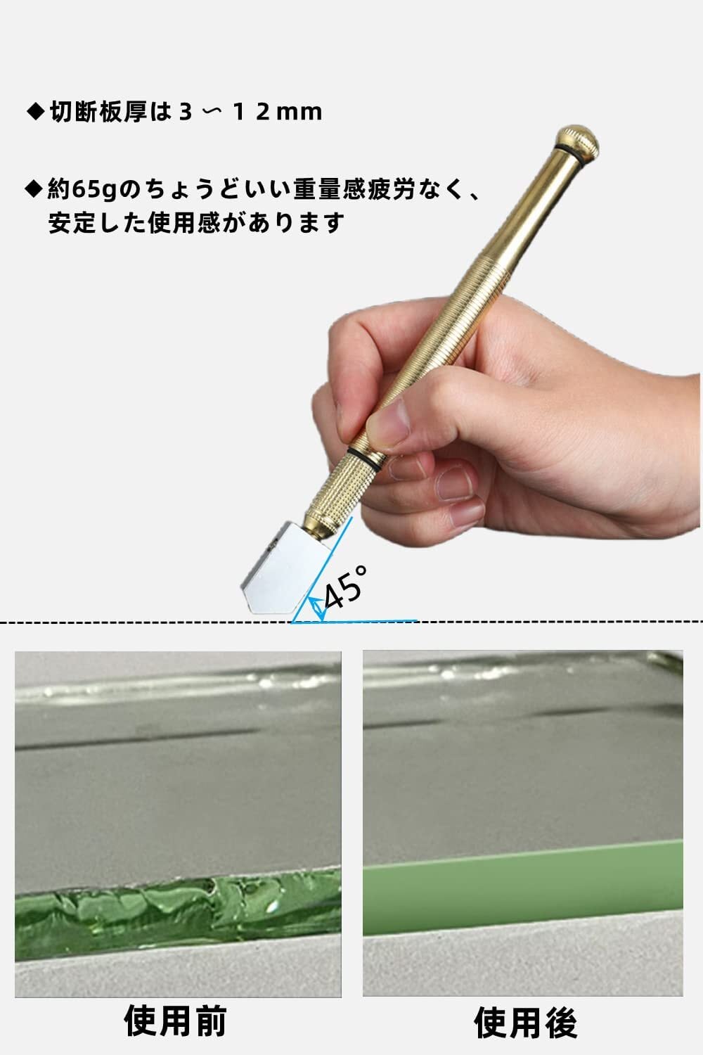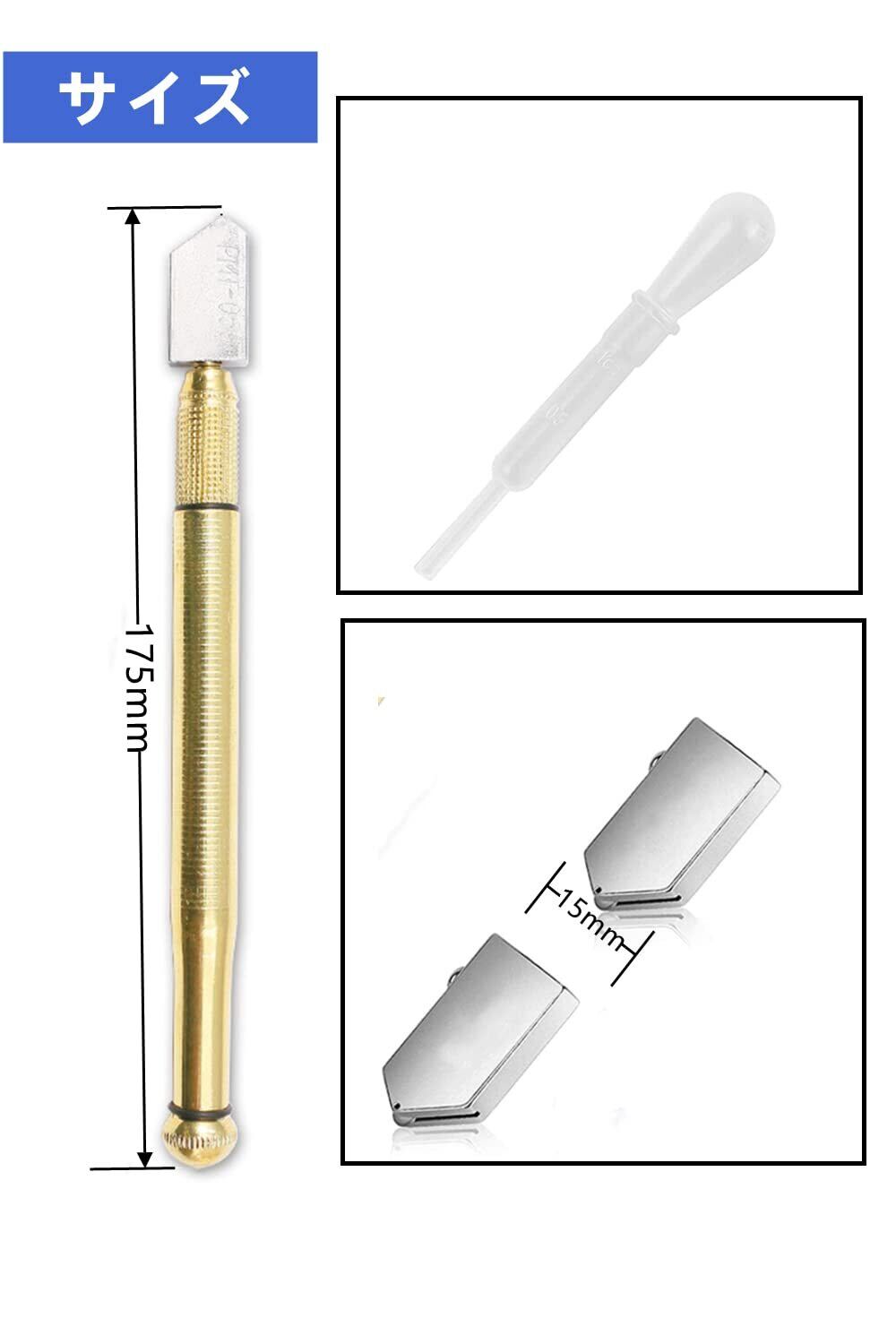 ガラスカッター 超硬オイル硝子切り 切断工具 (3〜12mm) 滑り止め取っ手のスチール製刃 DIY 工具 ガラス切りカッター (1本+2個替刃)