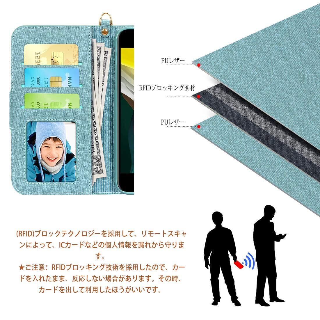 Skycase iPhone SE ケース 第3世代 2022 iPhone SE用ケース [第2世代] / iPhone8用 / iPhone7用 ケース [スキミング防止機能] PUレザー 手帳型 カード収納 スタンド機能 ストラップ付き 全面保護 耐汚れ 耐衝撃 4.7インチ 2022 新型 iPhone SE /iPhone8 /iPhone7 兼用 スマホケース ミントグリーン