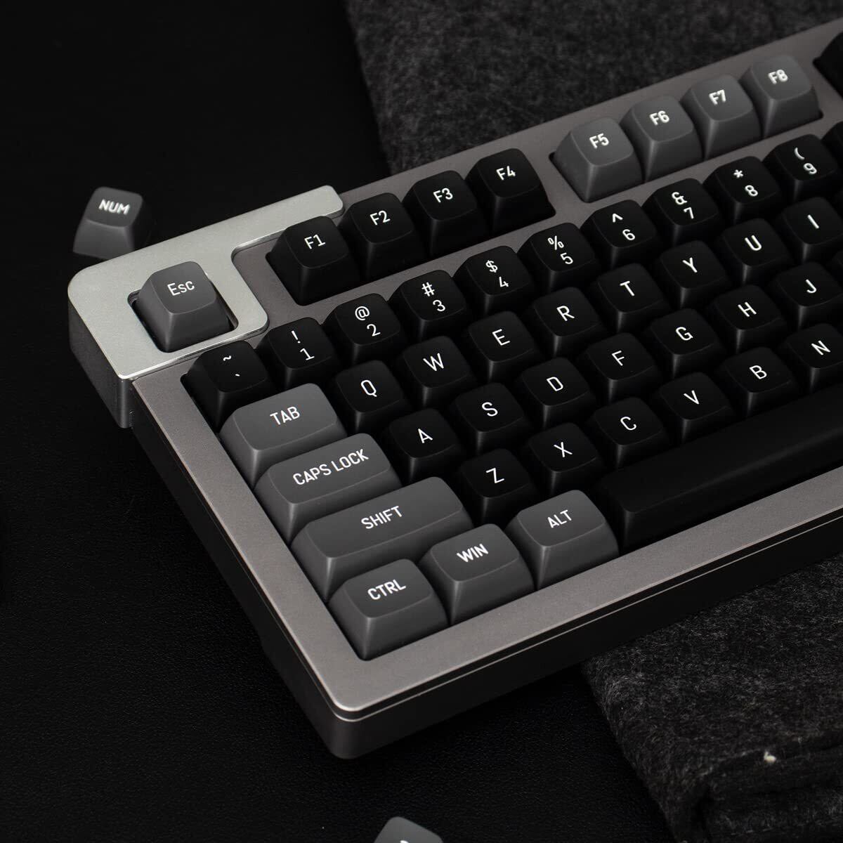 【デュアルカラーキーキャップ】これらのブラックグレーのキーキャップは2色の技術で作られているため、キーキャップの凡例は非常に明確で、フォントは美しく、色あせせず、耐久性があります。