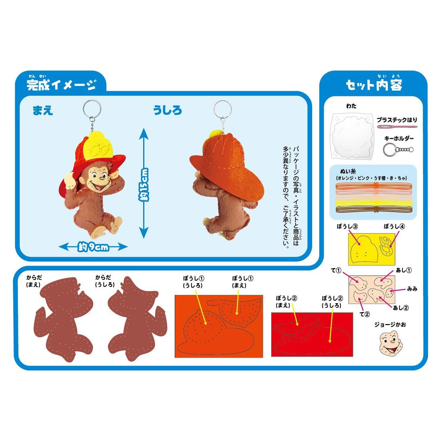 おさるのジョージ の キャラクター マスコット が作れる ソーイング キット ! 付属の プラスチック 針 と 糸 を使って、順番通りに 布 を縫い合わせて最後に 綿 を詰めると マスコット キーホルダー が作れます。