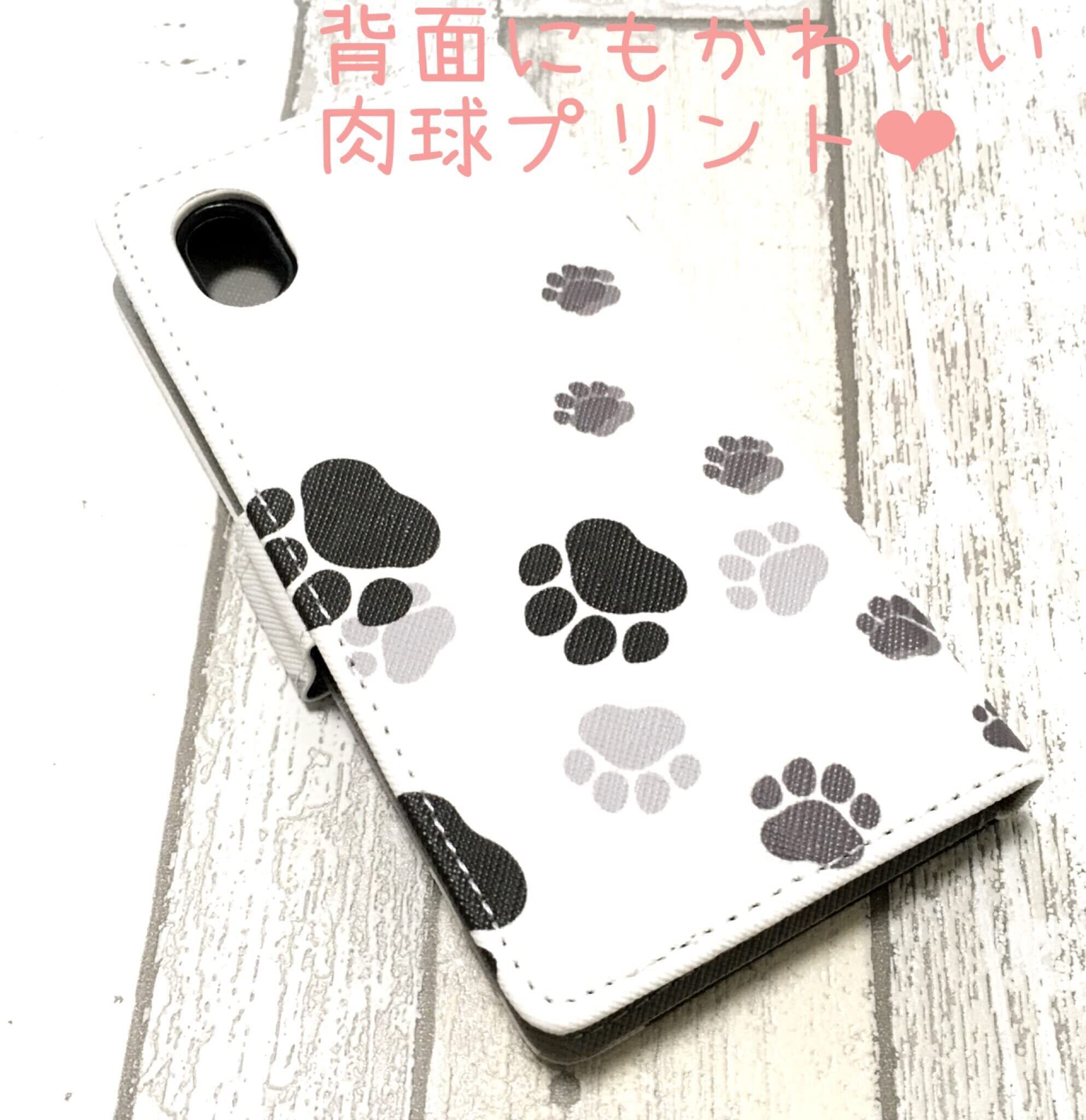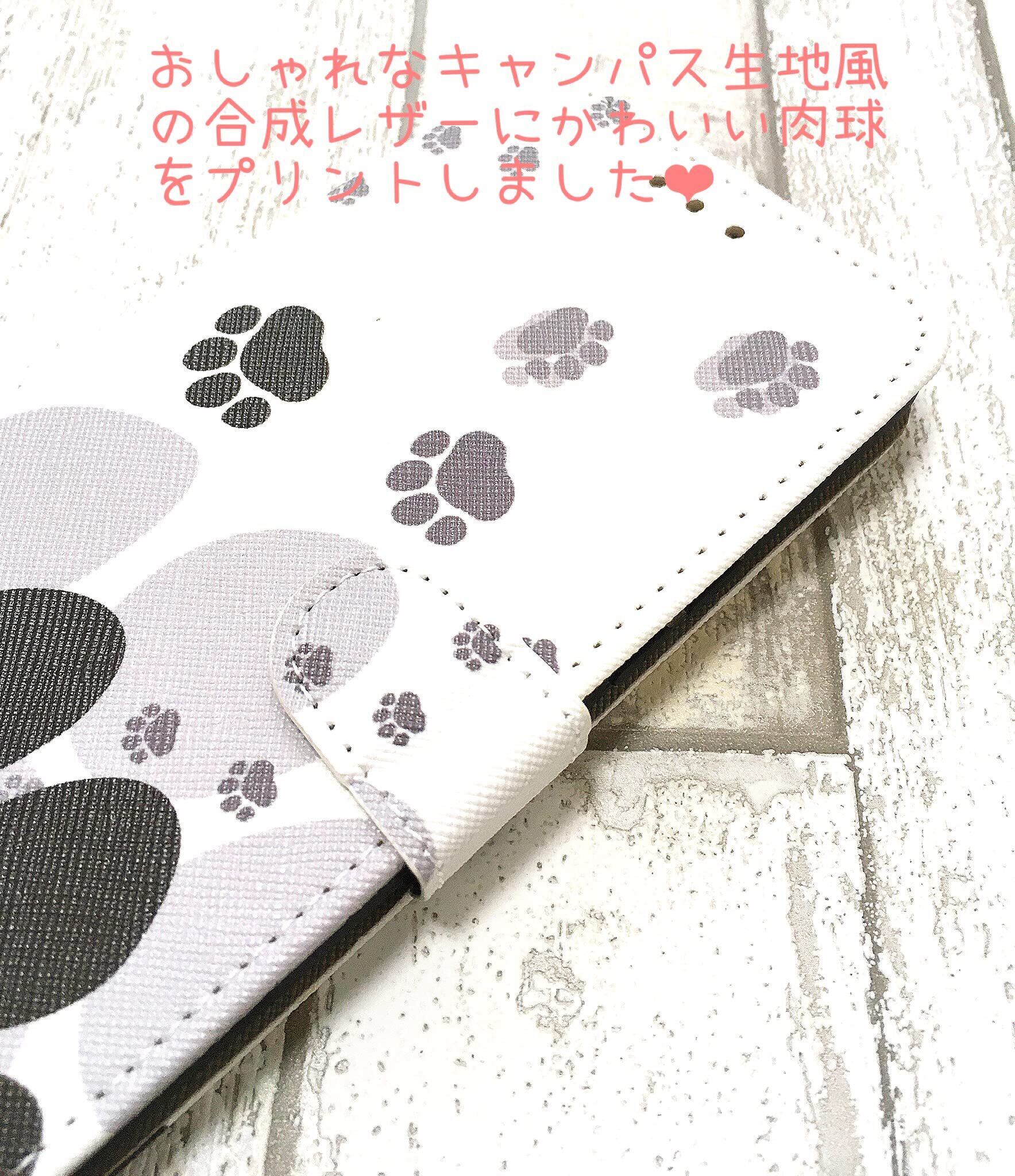 とても人気の可愛い肉球柄プリント!! 肉球のプリントが映えるこだわりのキャンパス生地風の素材をセレクト。 わんちゃん、猫好きの方に大人気の手帳型カバーです。