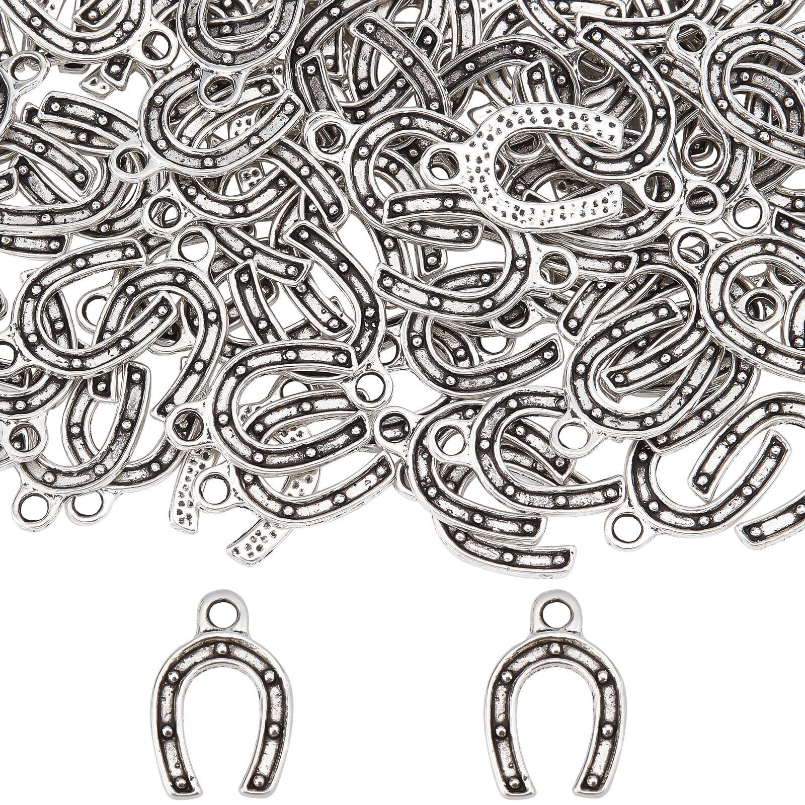 SUNNYCLUE 1箱100個 合金 チャーム 馬蹄 チャーム ホースシュー ペンダント 馬蹄形 ペンダント 半円形 合金 パーツ ばてい ピアス 馬蹄銀 イヤリング 馬てい ネックレス ごうきん ブレスレット 銀古美 キーホルダー 半円形 メタルパーツ レトロ風 アンチック 合金 ペンダント チャームパーツ アクセサリー 基礎パーツ ジュエリー作り レディース デコキット クラフト手芸 手作りハンドメイド クリスマス バレンタインデー お正月 キット DIY飾り物