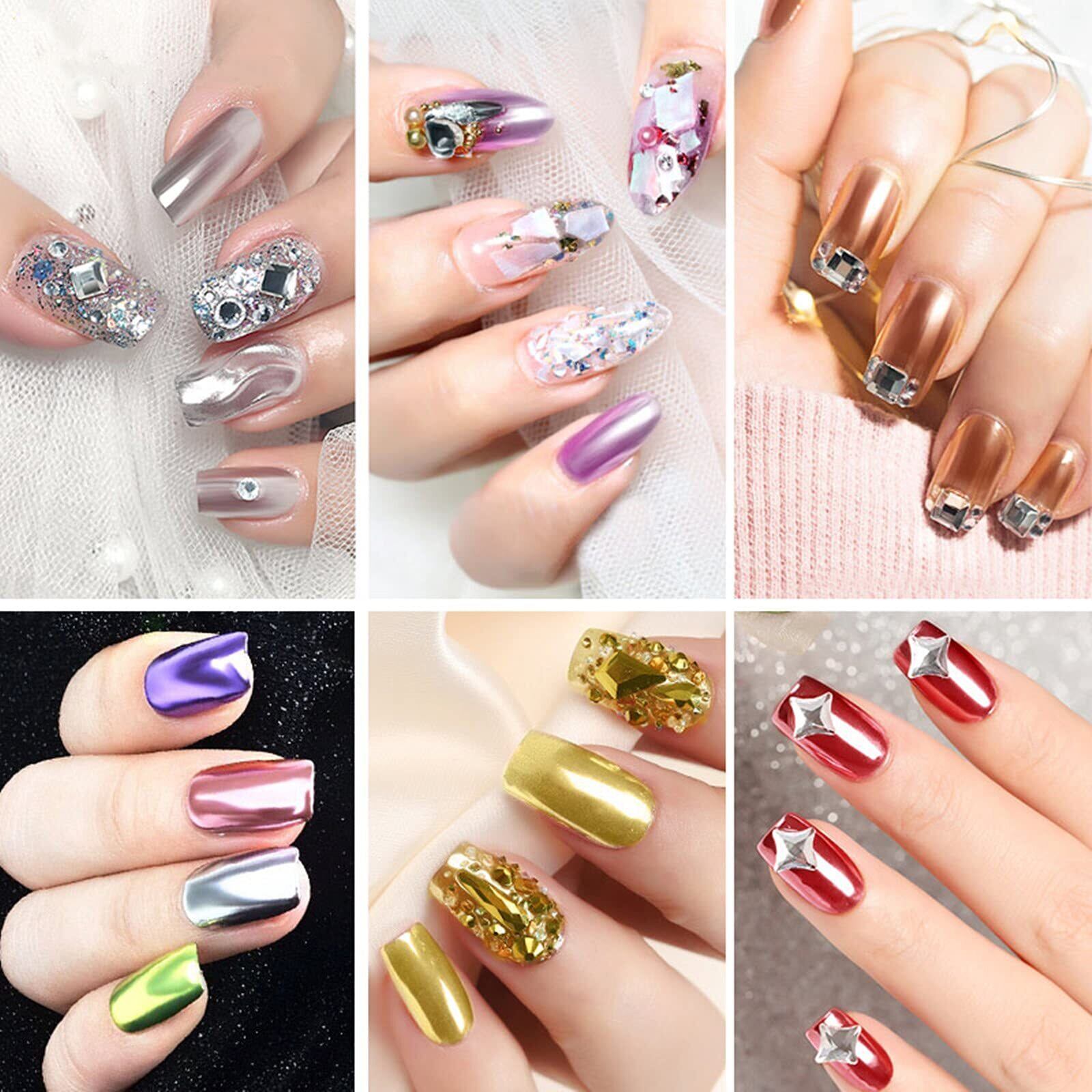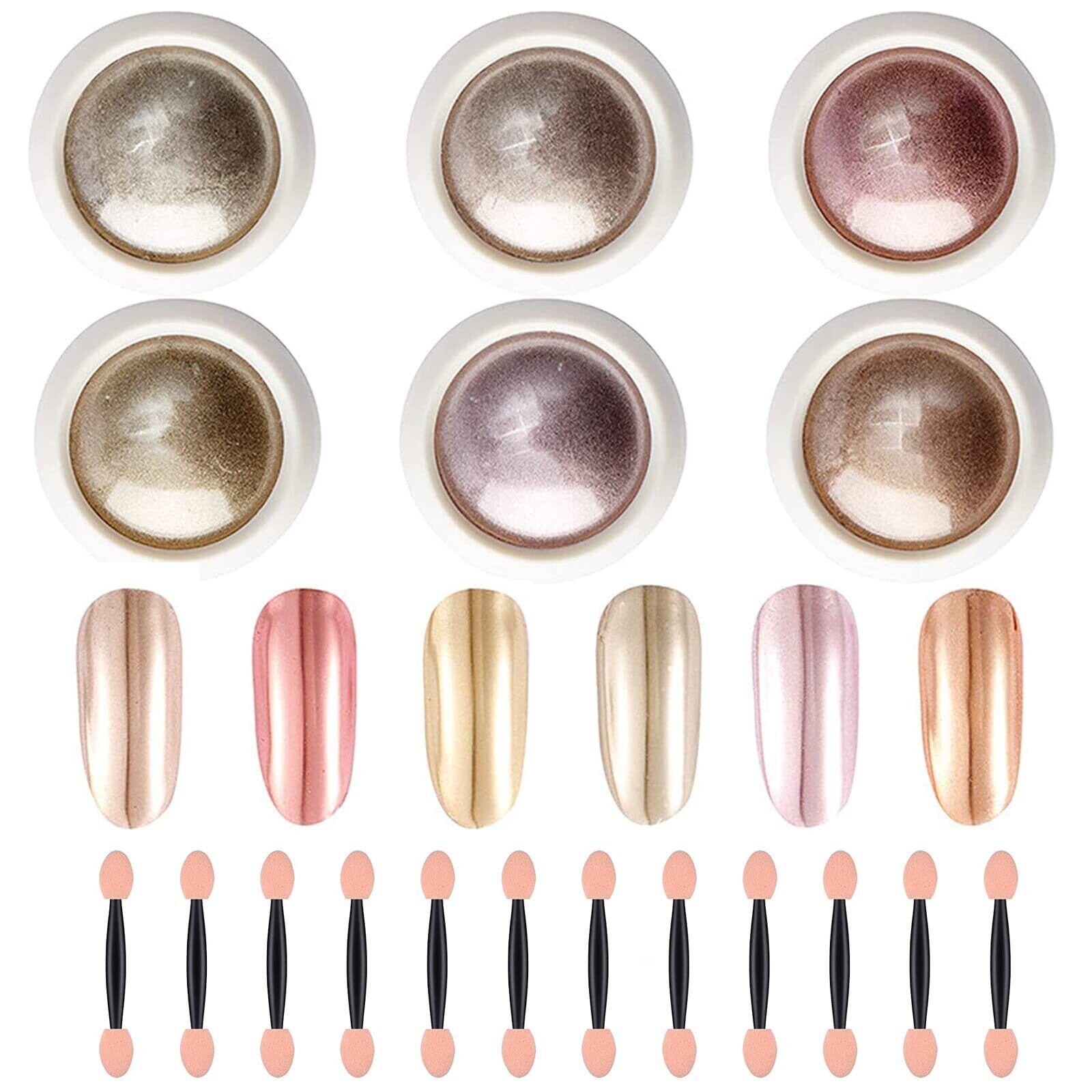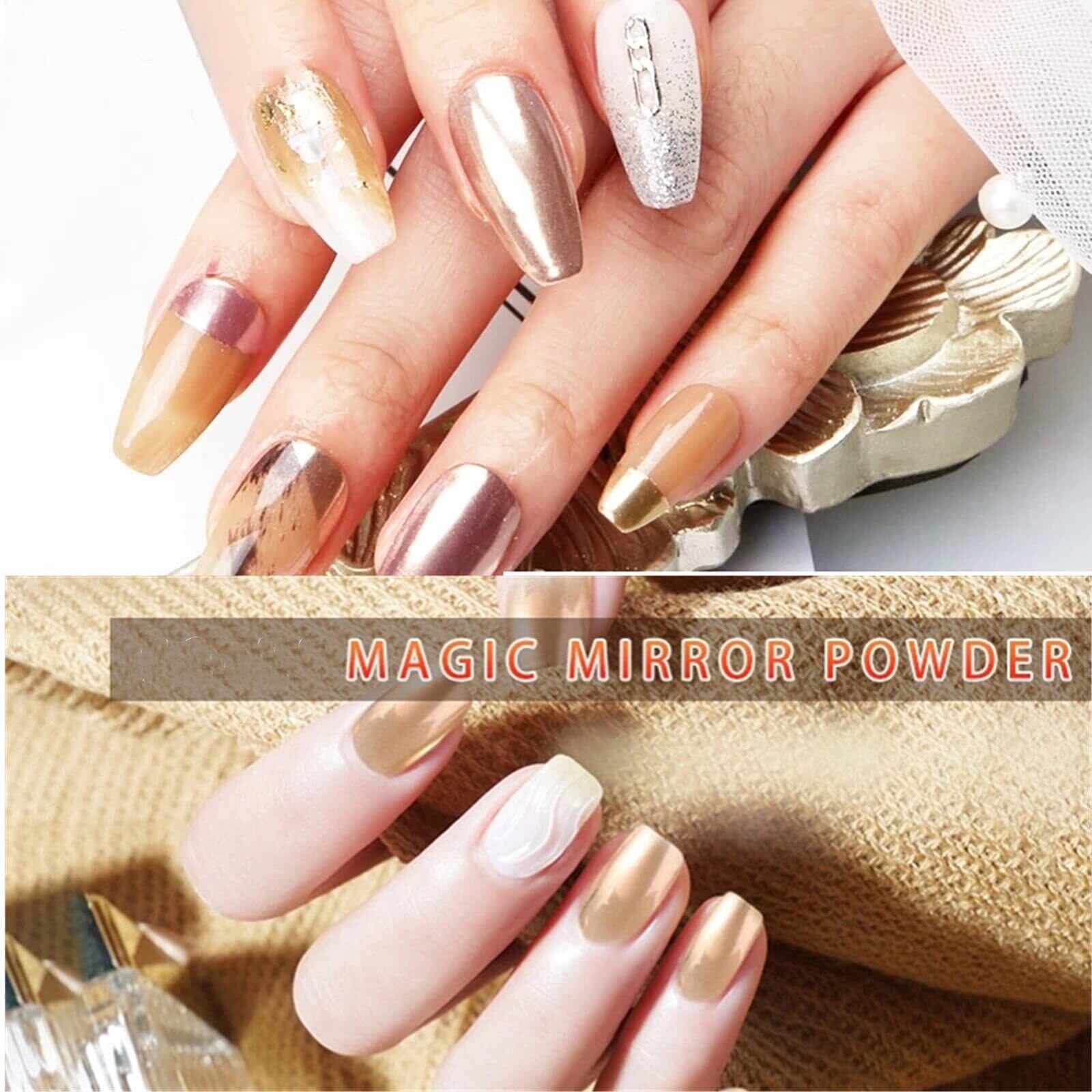 【ミラーパウダー】6色のミラーパウダーが一つのケースに入っています。様々なネイルアートが楽しめます。使用頻度の高い色が揃っています。発色が良く綺麗です。春ネイル、夏ネイル、秋ネイル、冬ネイルに適しています。