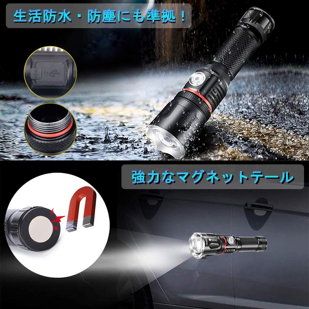 led 懐中電灯 充電式 強力 LED ハンディライト Type-C 充電式 懐中電灯 マグネット 高輝度 4モード 電池残量 防水機能 停電 防災 軍事用 キャンプ アウトドア 夜釣り 【懐中電灯&ランタン2in1】