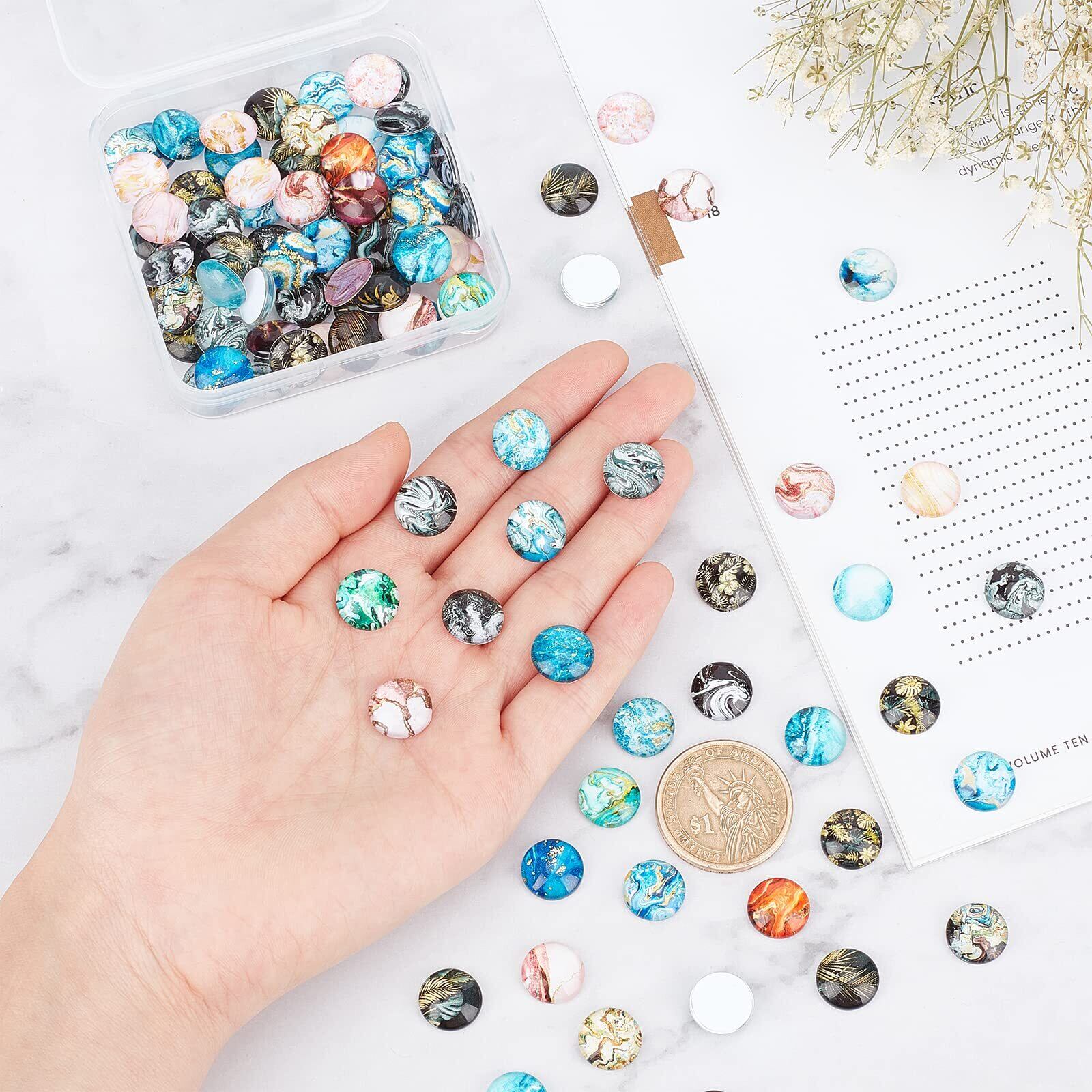 PH Pandahall 12mm 100個ガラスカボション ラウンドビーズ 図案付き アートスタイル クリスタル ドーム 拡大レンズ効果 DIY用 手芸用品 DIY ジュエリー用 カラフル ハンドメイド アクセサリーパーツ