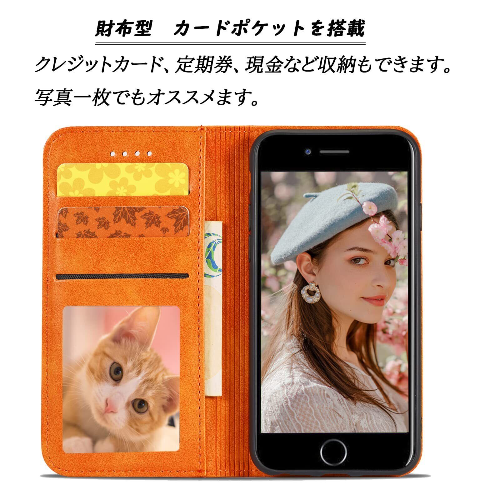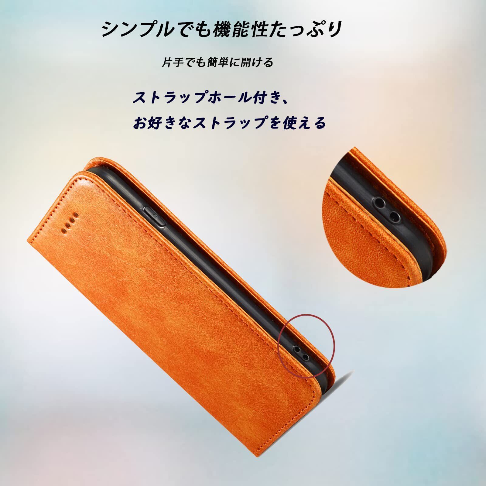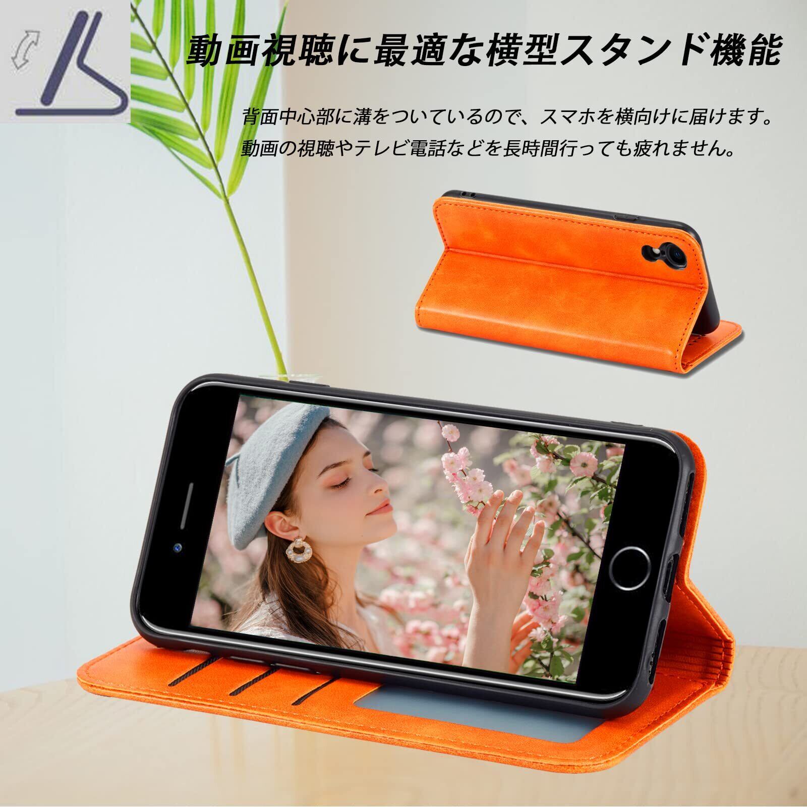 iPhone XR ケース手帳型 iPhonexr 手帳型ケース アイフォン xr 携帯ケース カバー スマホケース あいふぉん手帳型ケース XR 携帯カバー 合革 肌触りレザー ストラップホール付き 財布型 カード収納 財布型 iphone case マグネット内蔵 スタンド機能 耐衝撃 薄型 軽量 防水 耐摩擦シンプル ビジネス風 男女兼用 (iPhone XR 6.1inch対応) オレンジ