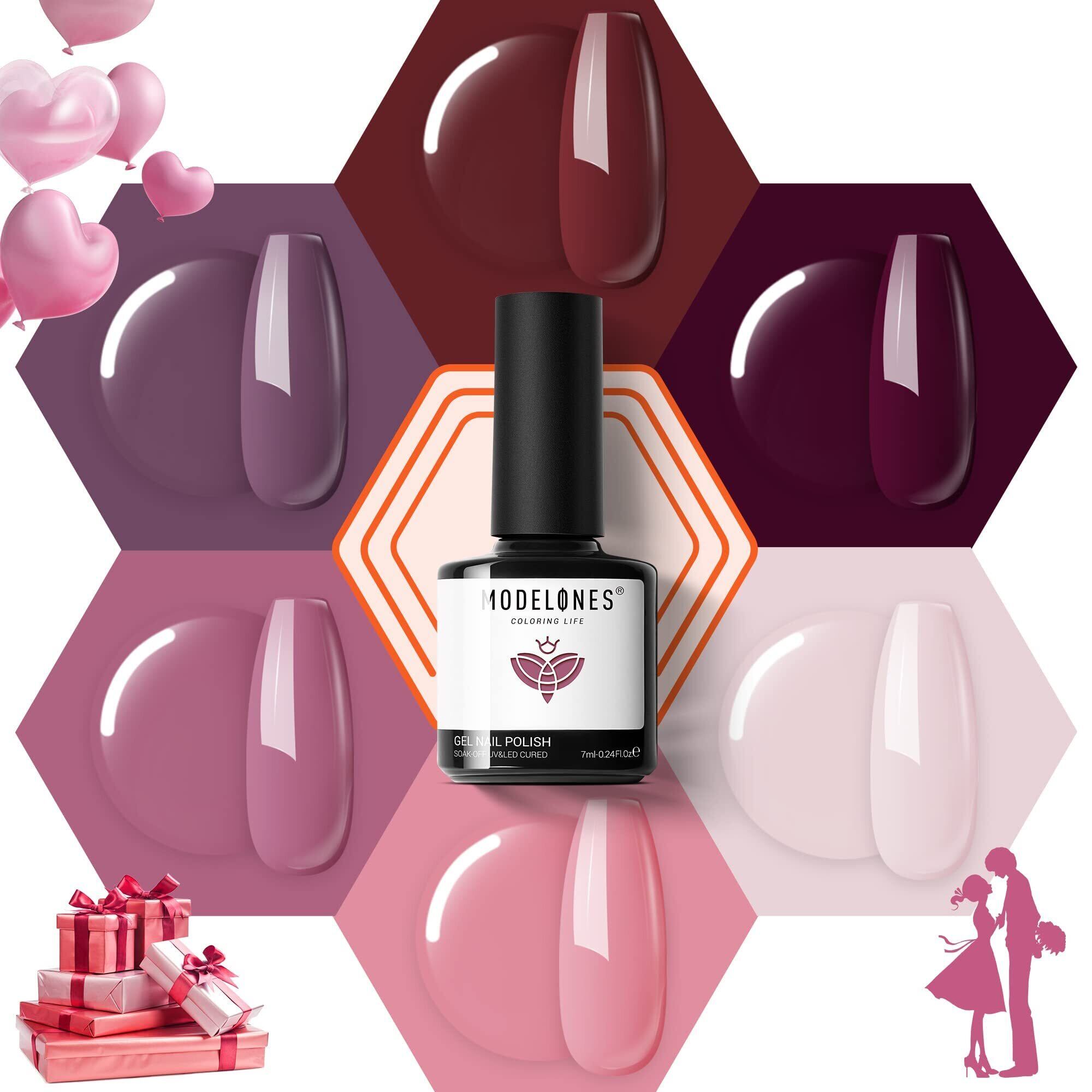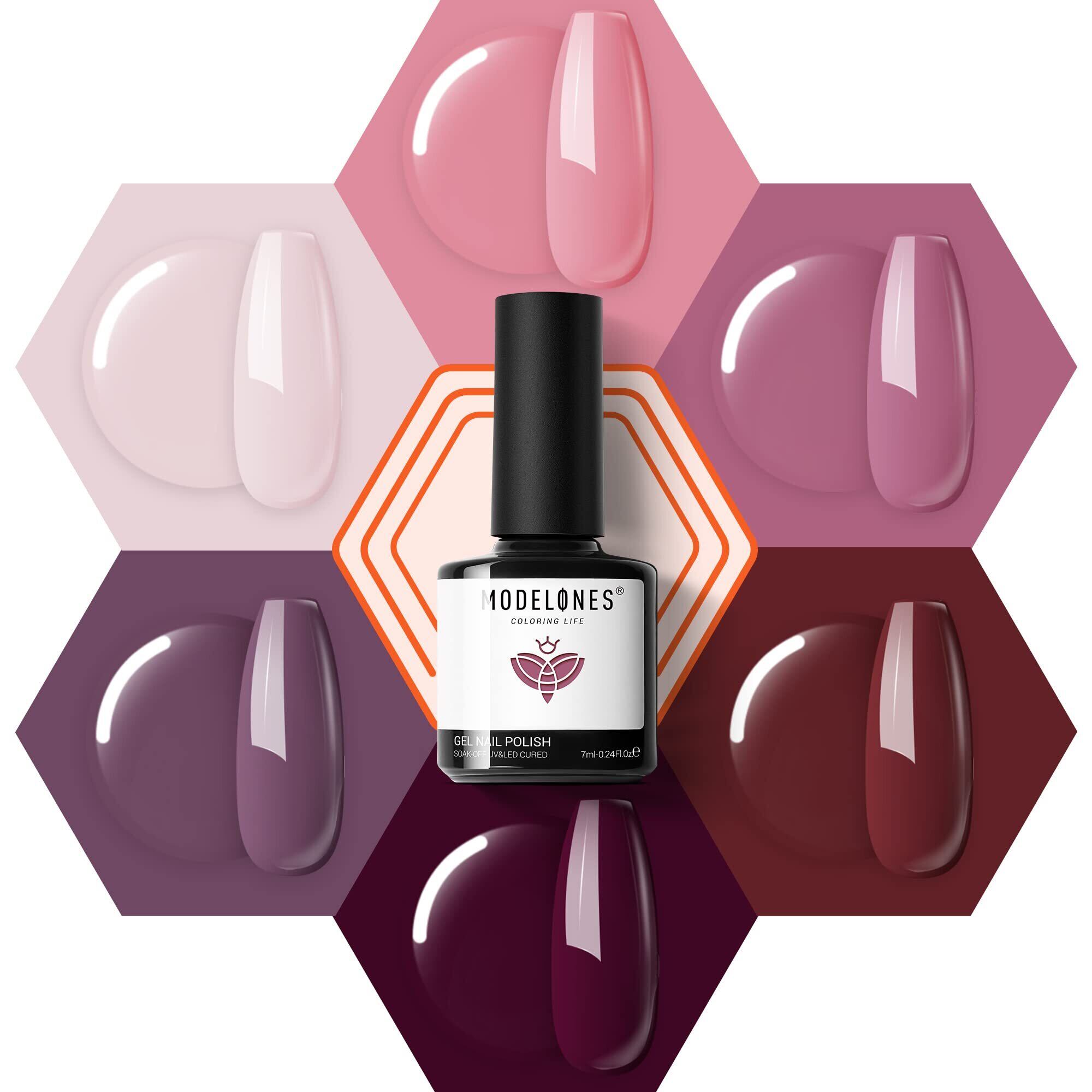 ジェルネイルポリッシュ:Modelones 6ピンクカラーのジェルネイルポリッシュセット:ジェルポリッシュ。ネイルランプの下で硬化させる必要があります。 ベースとトップコートが必要です。 ネイルランプの平均60〜120秒
