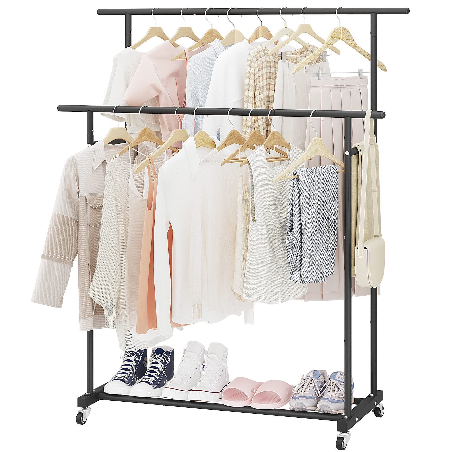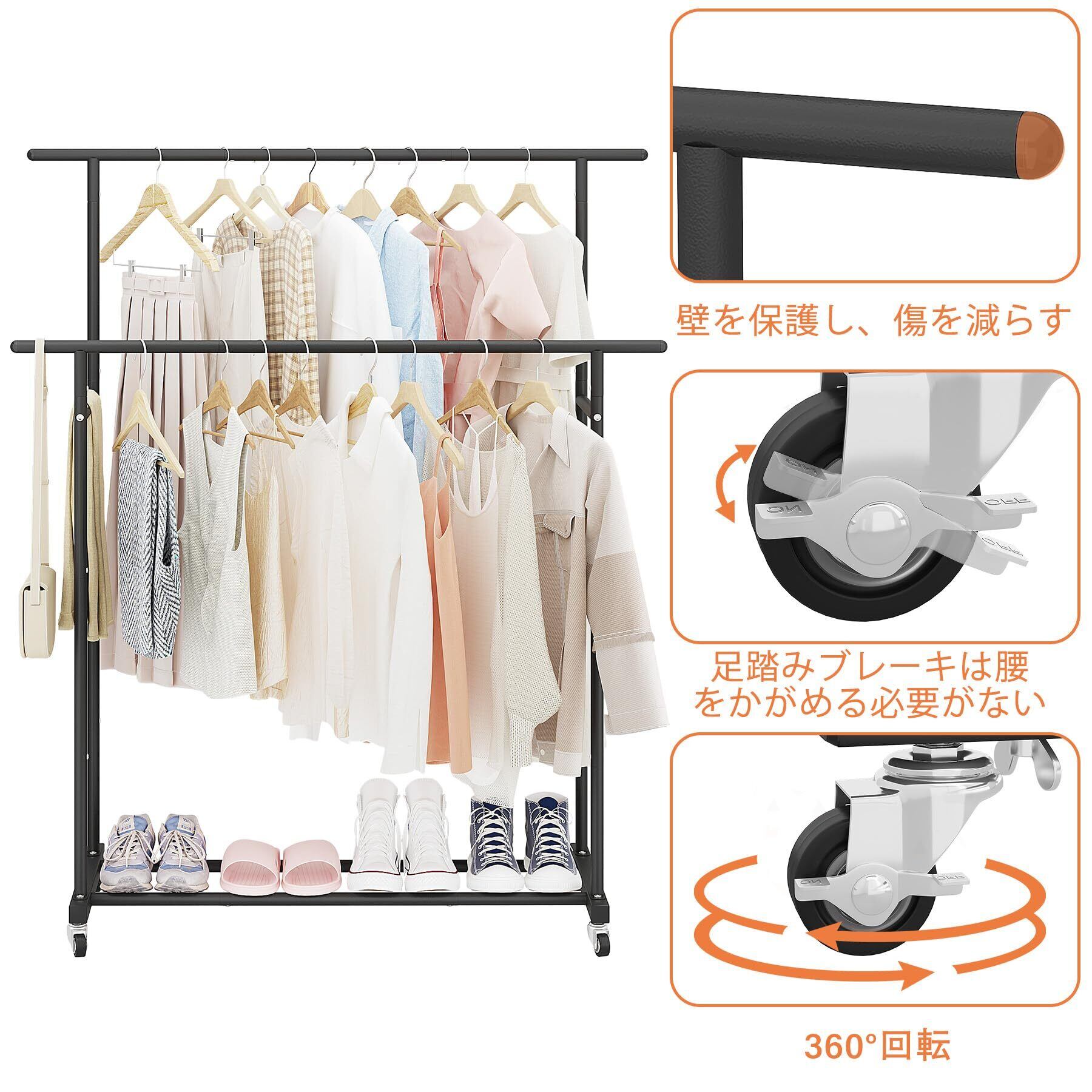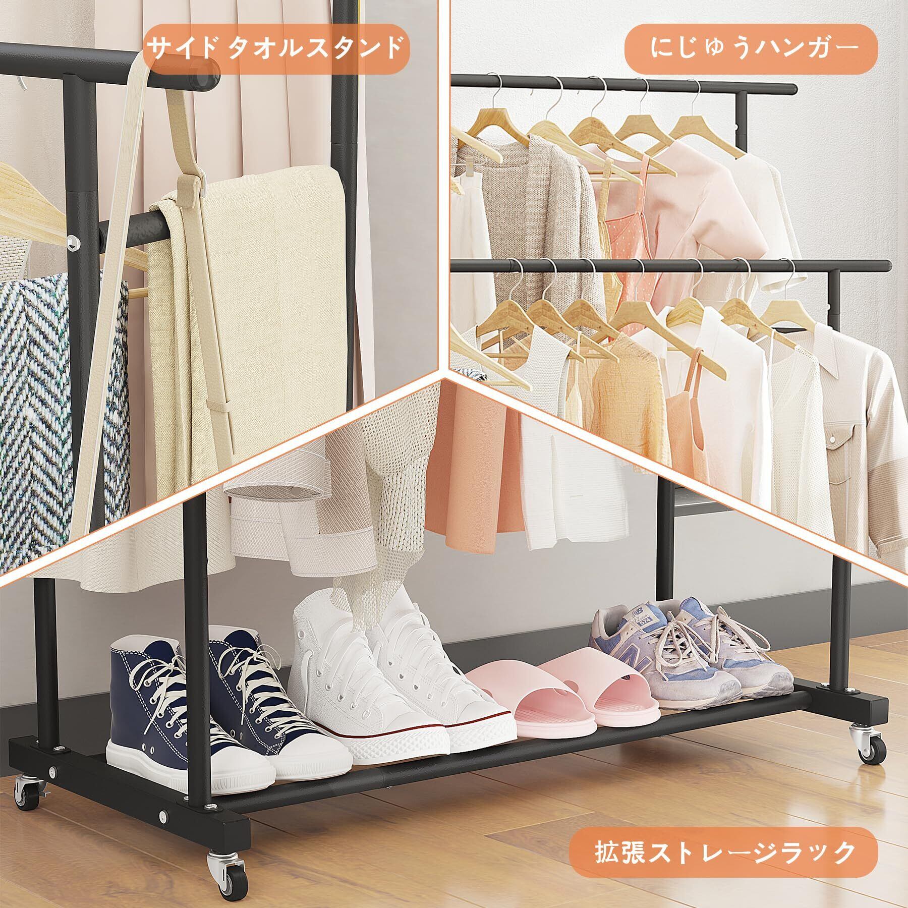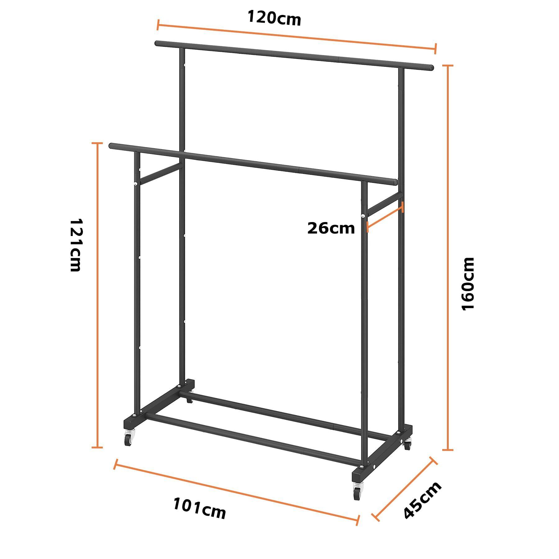 ガーメント ラック 自立型 ハンガー ダブル ロッド 多機能 ベッドルーム 衣類 ラック 101*45*160cm ブラック