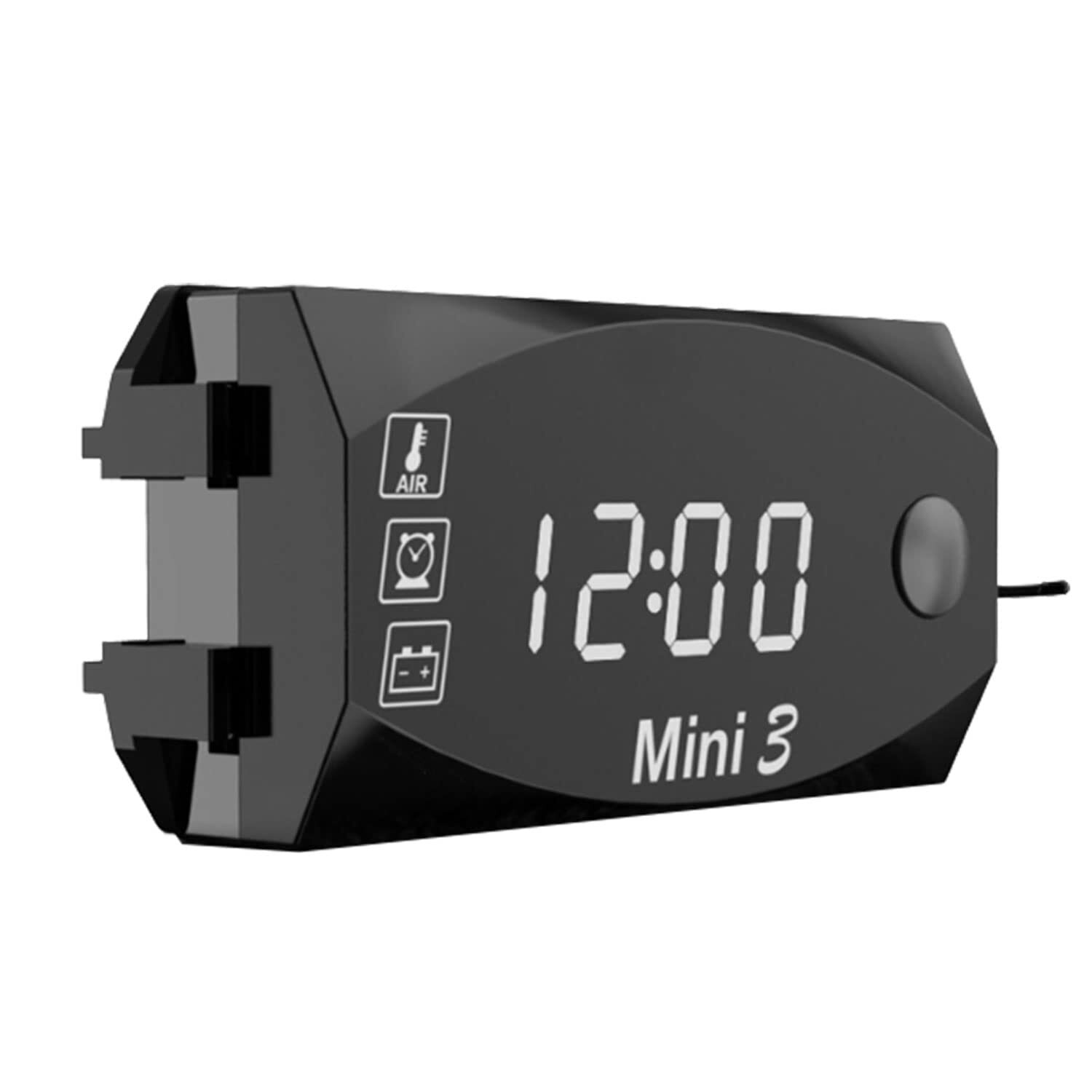 バイク デジタルメーター 電圧計 温度計 時計 3in1 防水 防塵 ボルトメーター 多機能 電圧計 12V ホワイト B-MAT02-W