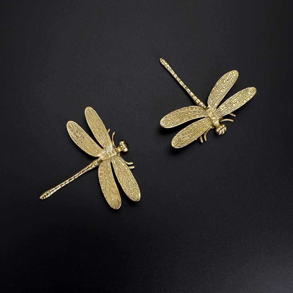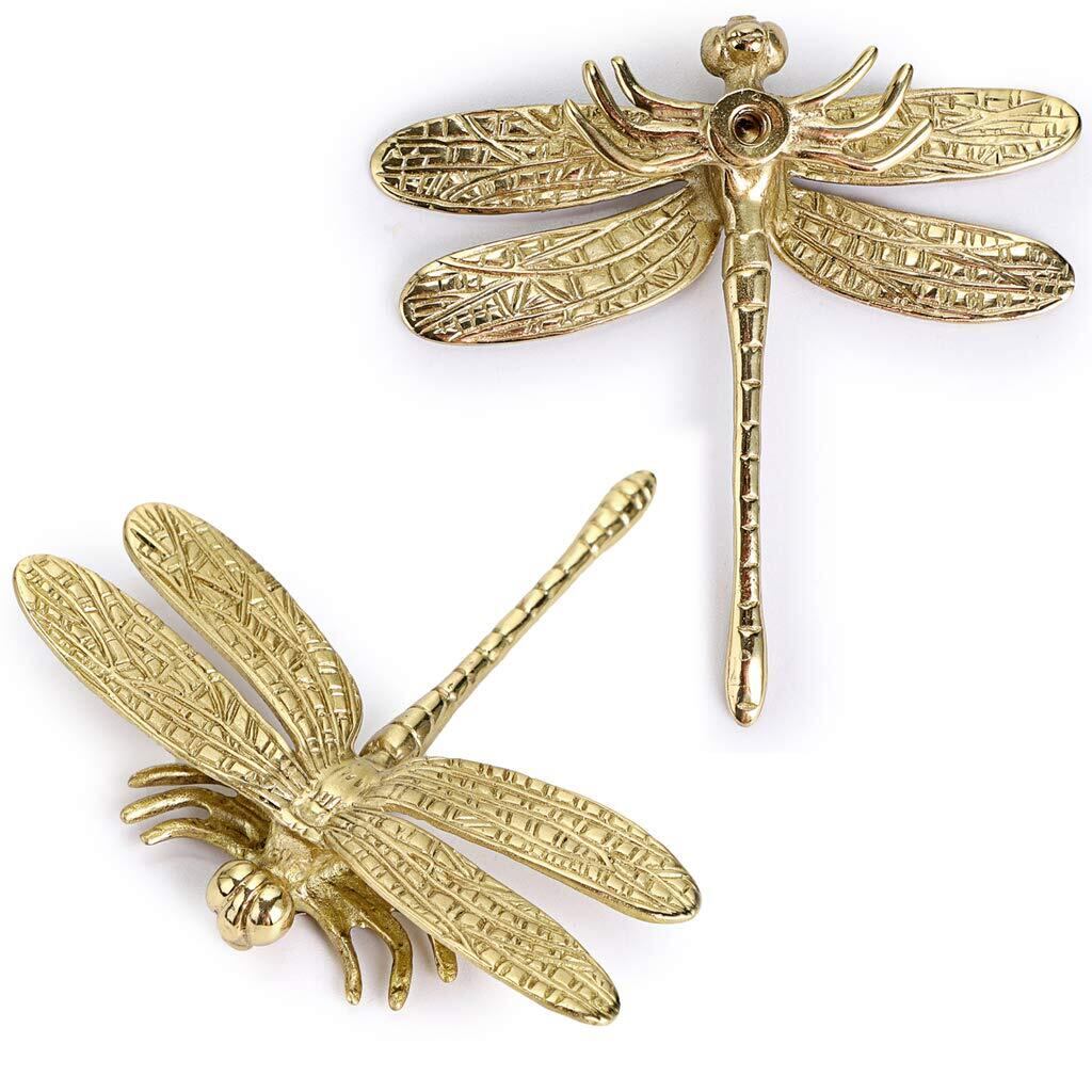 【2個セット】アンティークで可愛いトンボ型の真鍮製取っ手/つまみ2個セット(ネジ付け)。見た目はメタリックな質感がタップリ、美しい色、可愛い動物トンボのユニークなデザイン、どんな家具のスタイルに似合います。材質:真鍮、サイズ:約8*8cm。