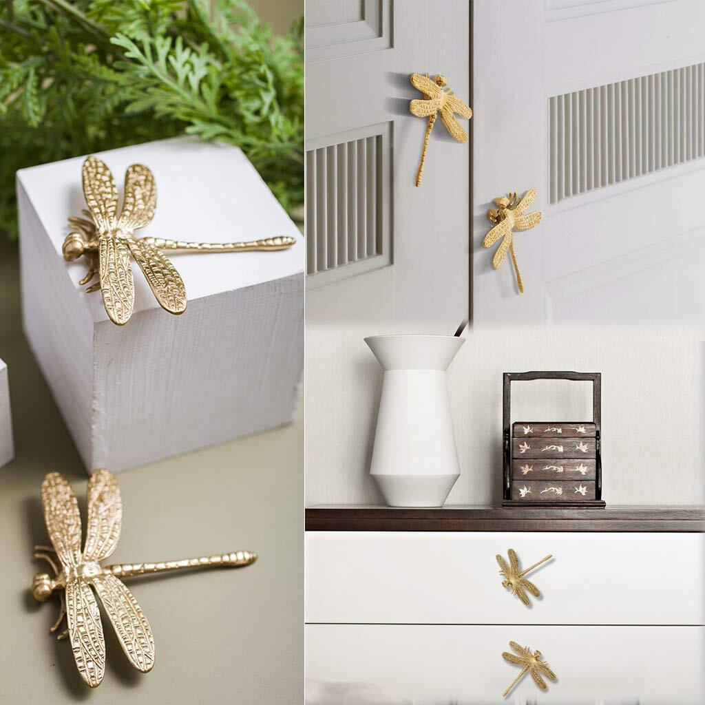 Sumnacon 取っ手 つまみ 真鍮 アンティーク 可愛いトンボ おしゃれ ネジ付き タンス キャビネット 食器棚 引き出しノブ 取手 ハンドル 飾り金具 2個セット (ゴールド)