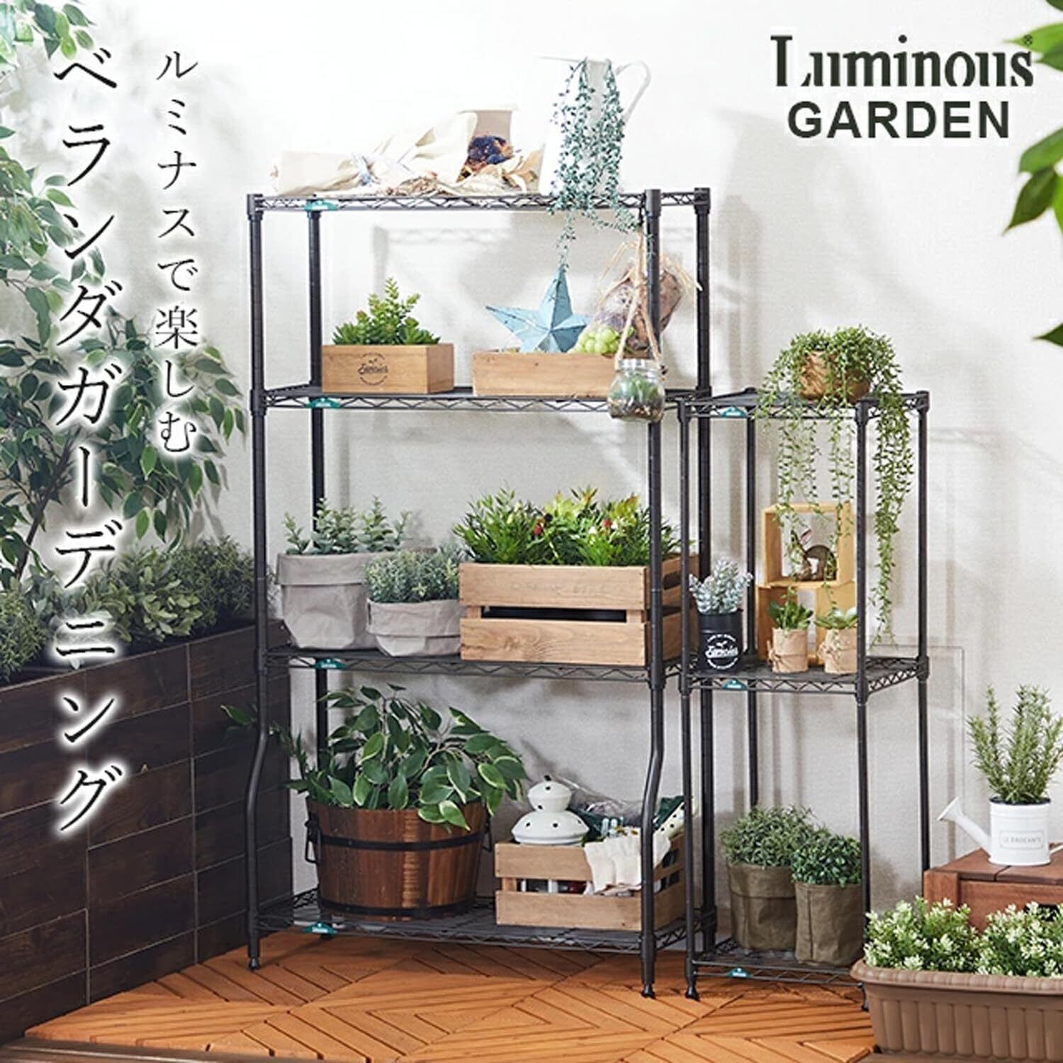 ●ルミナス史上初となる屋外使用が可能なラックで、ガーデニングに最適。抜群の通気性で、風を遮らないワイヤー構造。日当たりのよいベランダやお庭でも、床や地面の反射熱から大切な植物を守る