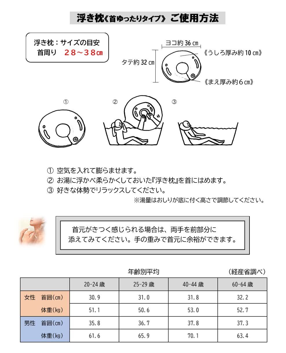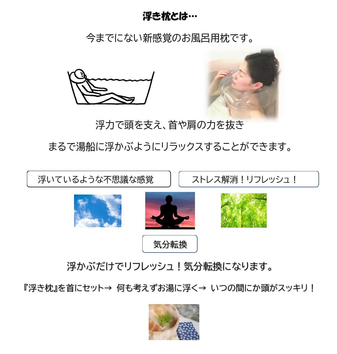 Uki-makura 首ゆったりタイプ 頭を浮かべて真のリラックス ができるバスピロー お風呂枕