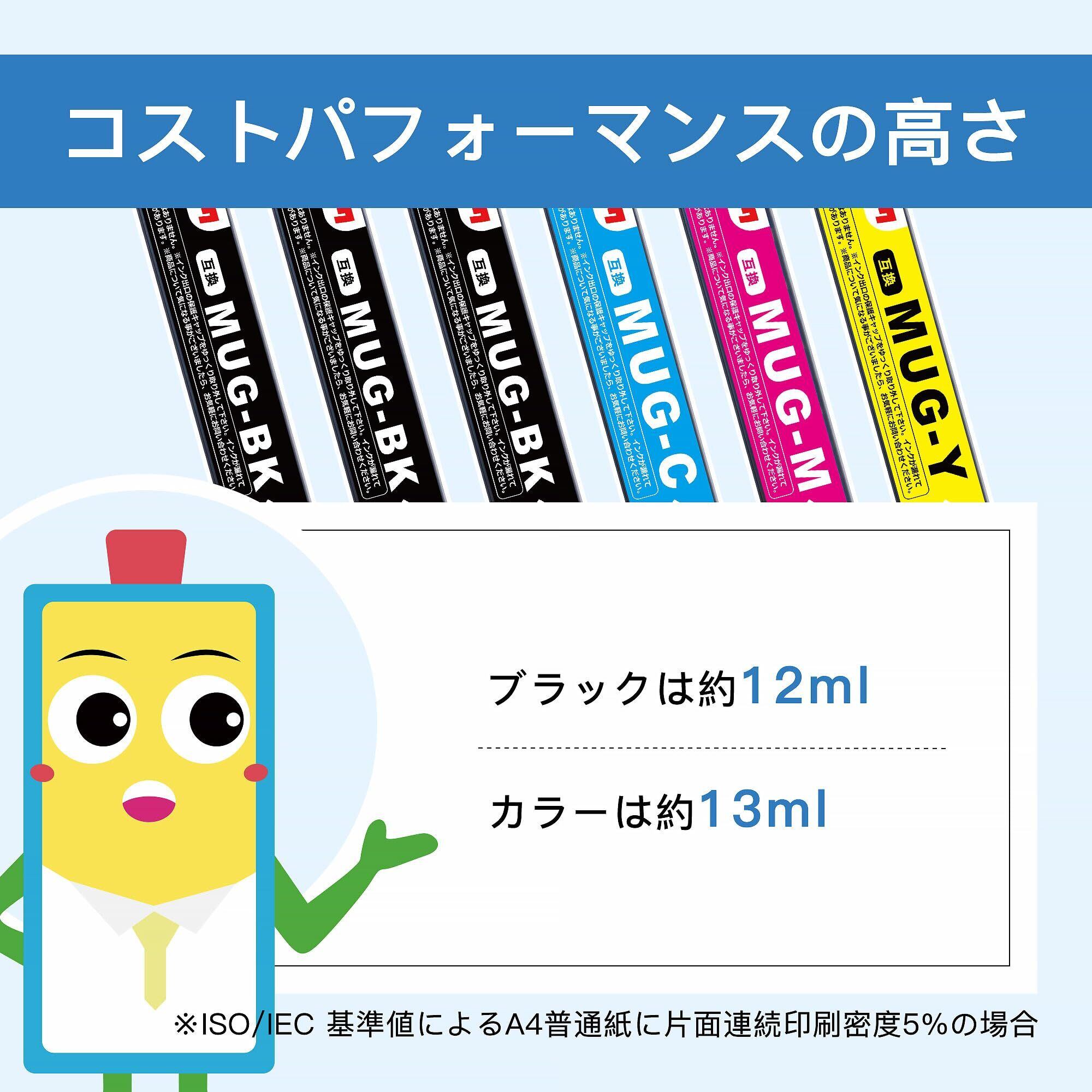 【セット内容】 弊店のエプソン用 インク マグカップ MUG-4CL 6本セット 大容量タイプ には MUG-BK ブラック 3本入り、MUG-C シアン、MUG-M マゼンタ、MUG-Y イエロー 各1本。