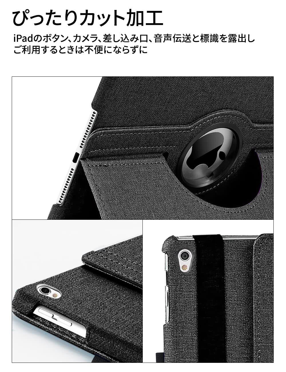 JXCX iPad Air 2019 ケース iPad Air3 10.5インチ ケース/iPad Pro 10.5 2017 保護カバー 360度回転 ケース バックカバー オートスリープ機能 耐衝撃 多角度 おしゃれデニム生地 (ブラク)