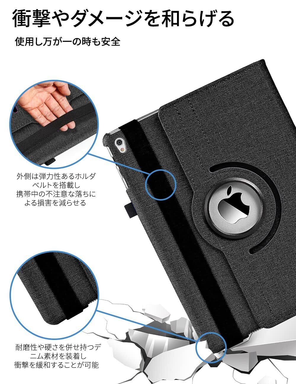 【360°全面保護】しっかり保護 iPadをしっかり包み込んで衝撃を吸収します液晶画面に触れる部分にマイクロファイバーを使用してるので、傷つきを防止します。
