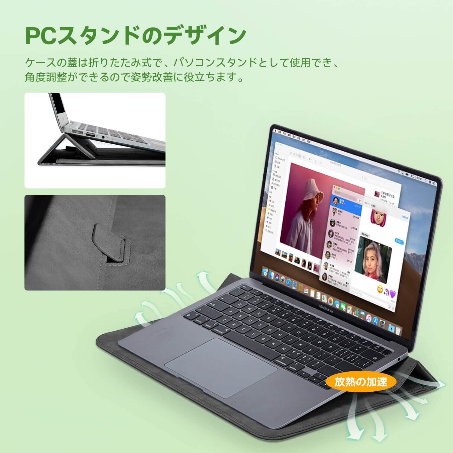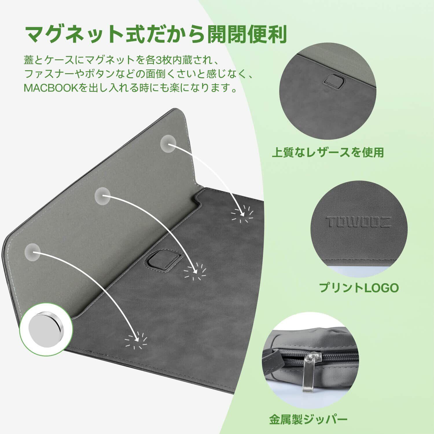 Macbook Pro 13インチ ケース Macbook Air m2 ケース 薄型 便利のマグネット式開閉 ノートパソコン ケース Macbook Air/Pro 13~14インチ M1 M2 チップス 対応 耐衝撃 傷防止 撥水加工 折り畳み式 パソコン ケース 電源収納ポーチ付き