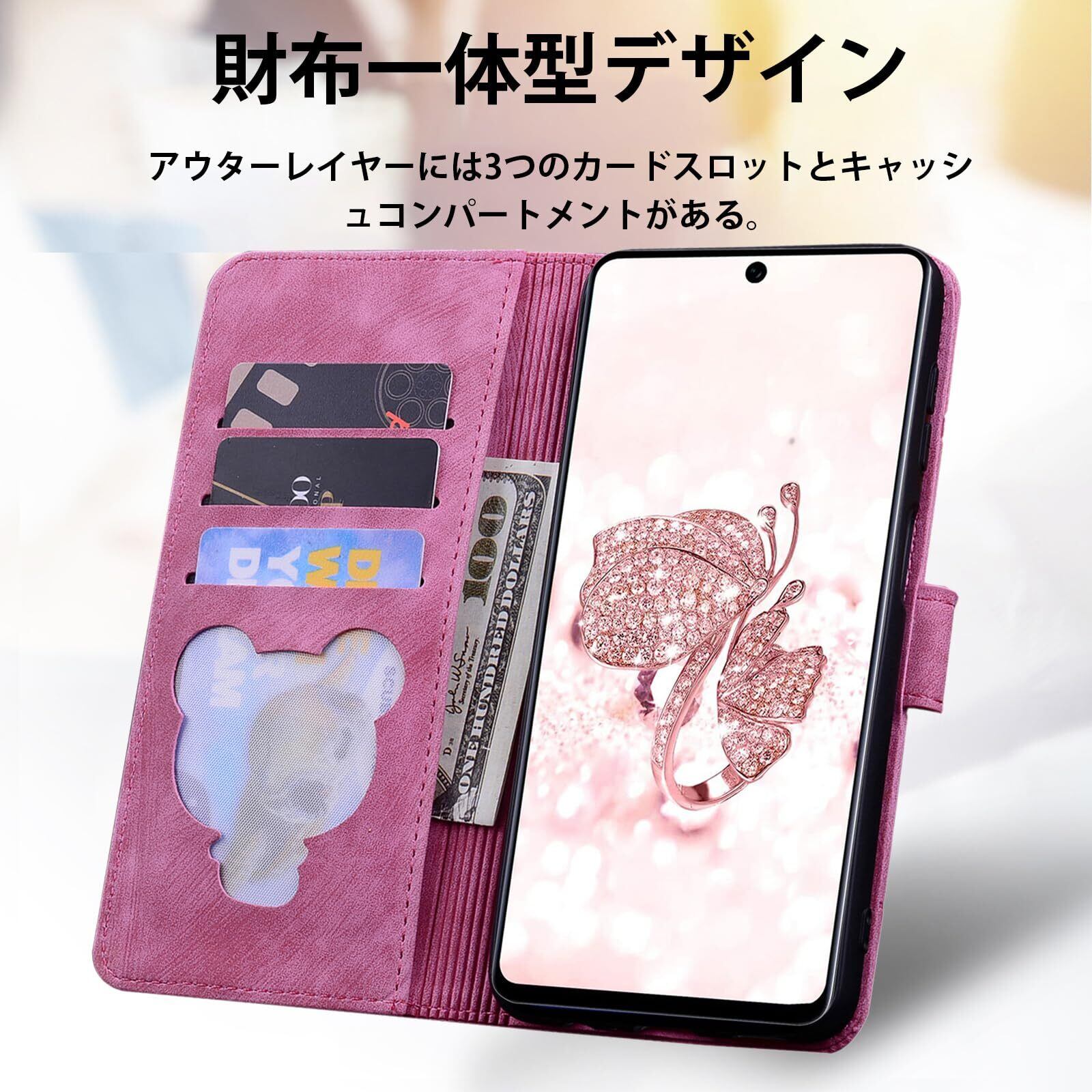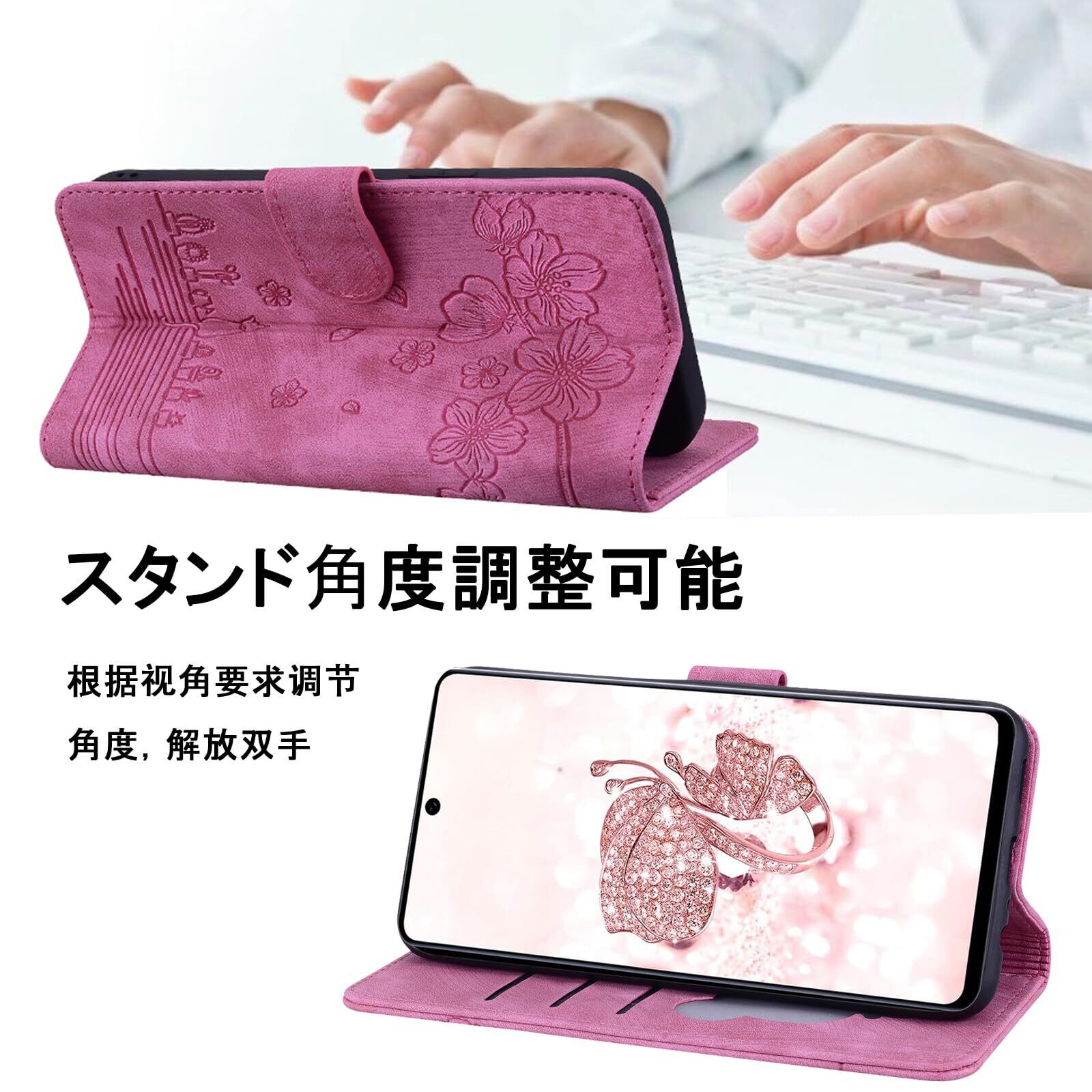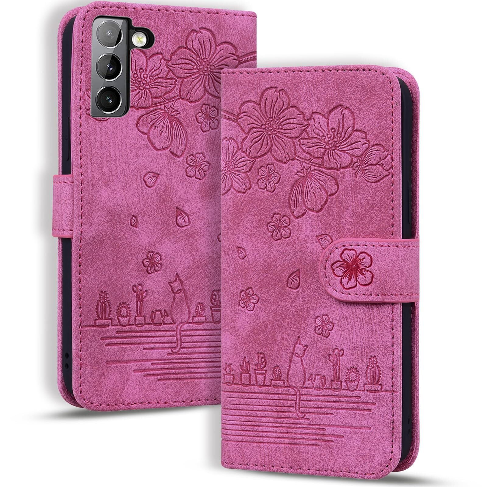 【Galaxy S22 ケース 手帳型】 スマホケース ギャラクシーs22 ケース 手帳型 sc-51c ケース galaxy s22 ケース SC51C ケースかわいい scg13 ケース 衝撃保護 プレミアムPUレザー カード収納袋 桜柄マグネットバックル 角度調整可能なスタンド 持ち運びに便利なリストストラップ[ローズピンク]
