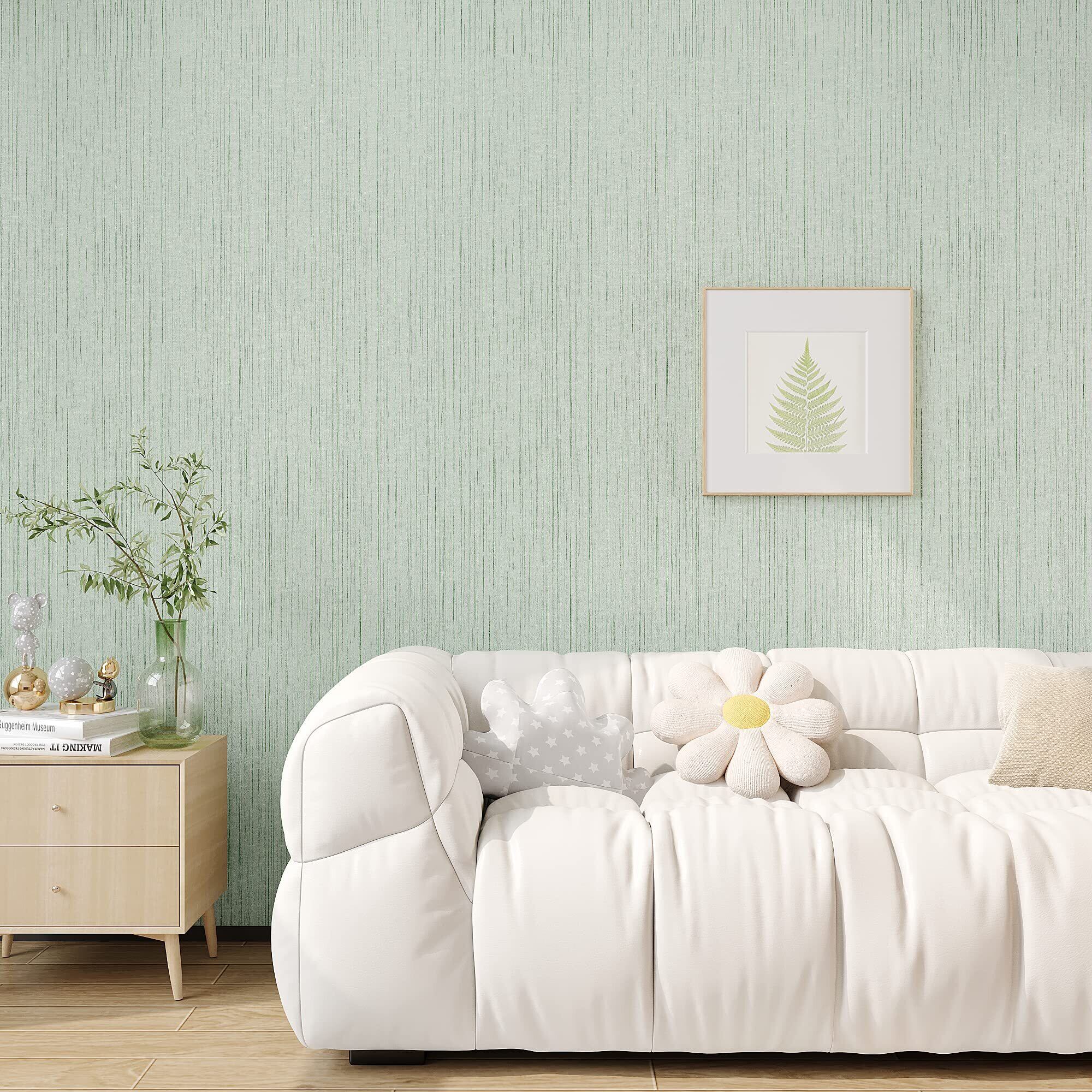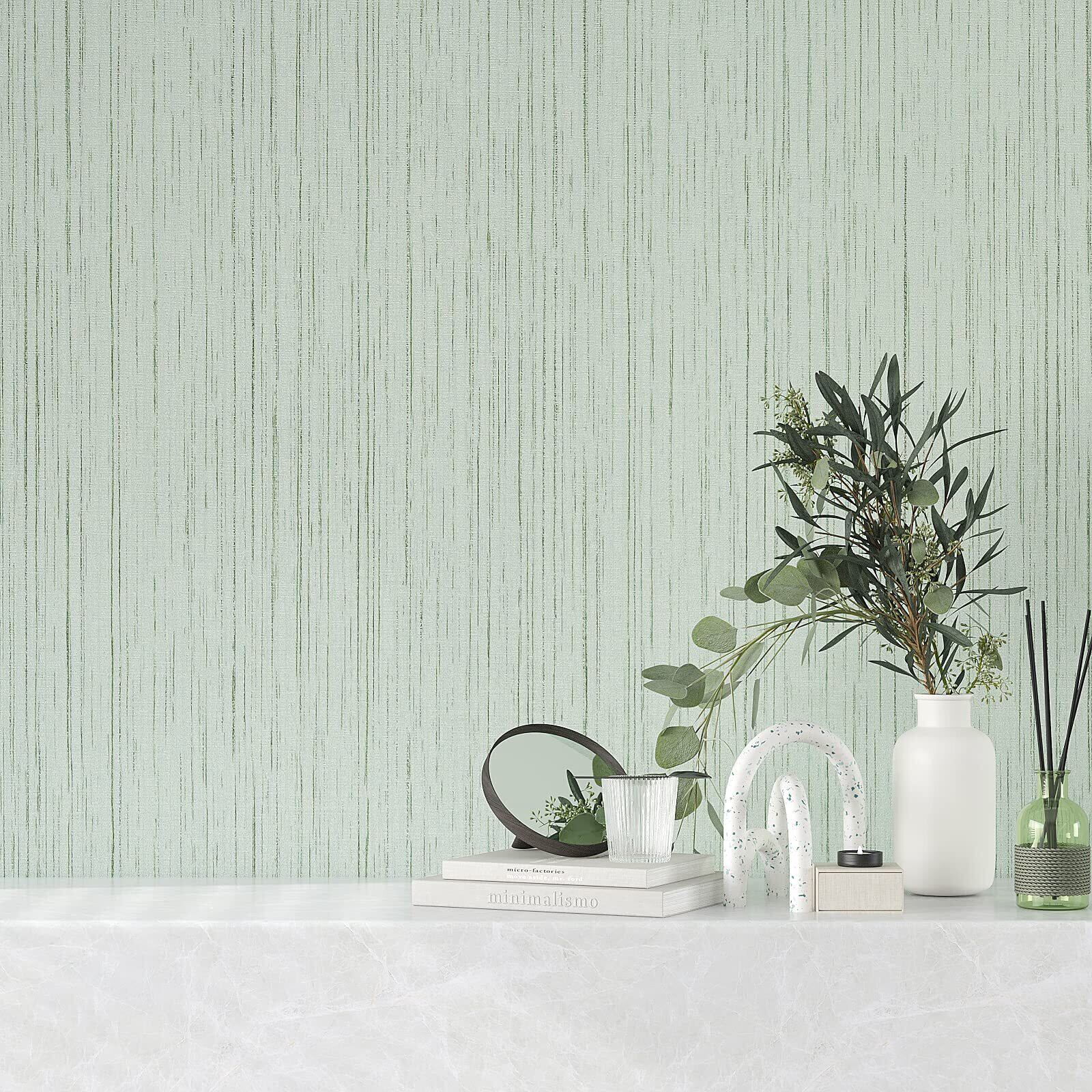 【サイズと素材】:サイズ:40cmx300cm、色:ミントグリーンの織物調、マット感:つや消し。高品質のポリ塩化ビニル製で、接着力が強く、貼りやすいです。剥がせるタイプで糊残りの心配はありません。賃貸でも安心に使用できます。