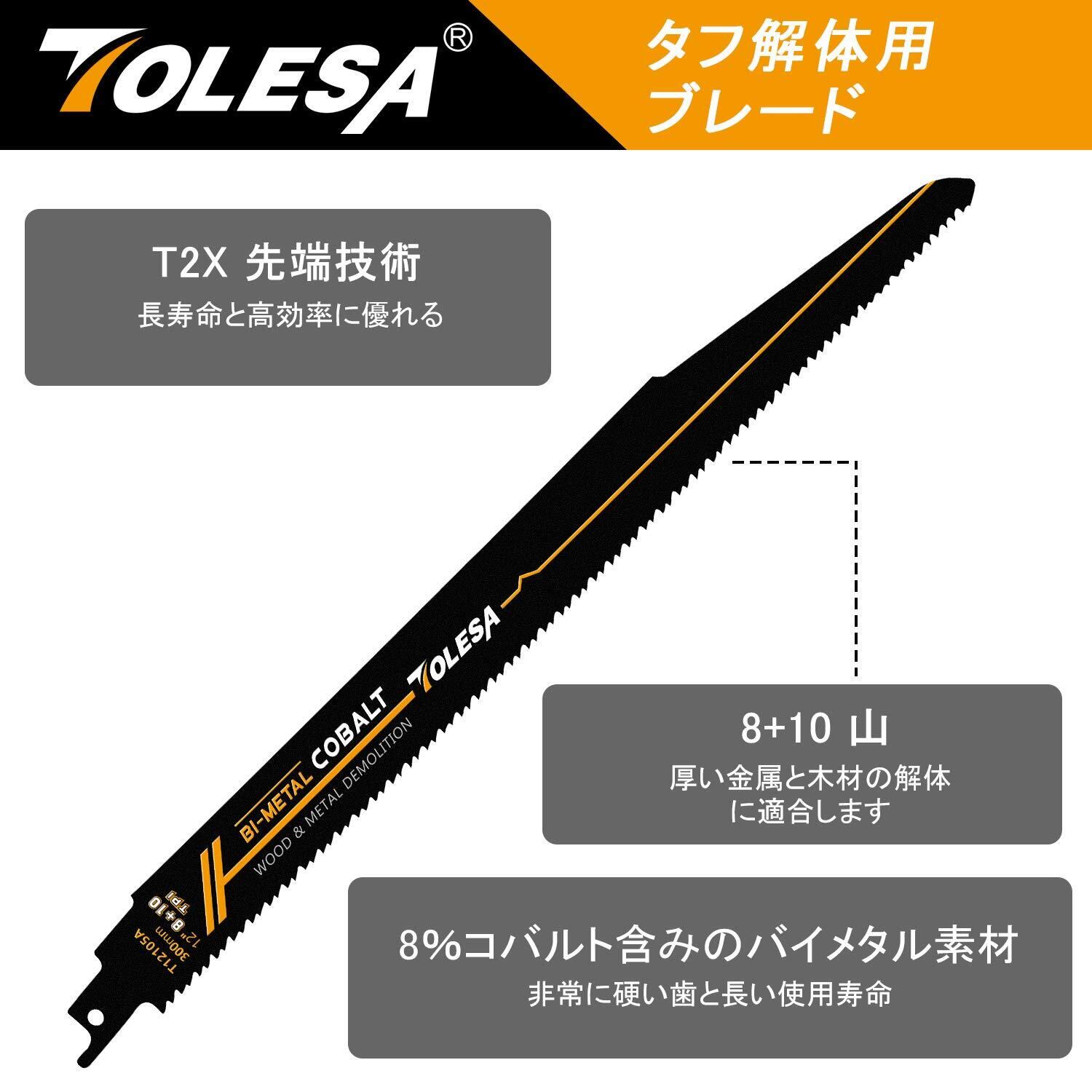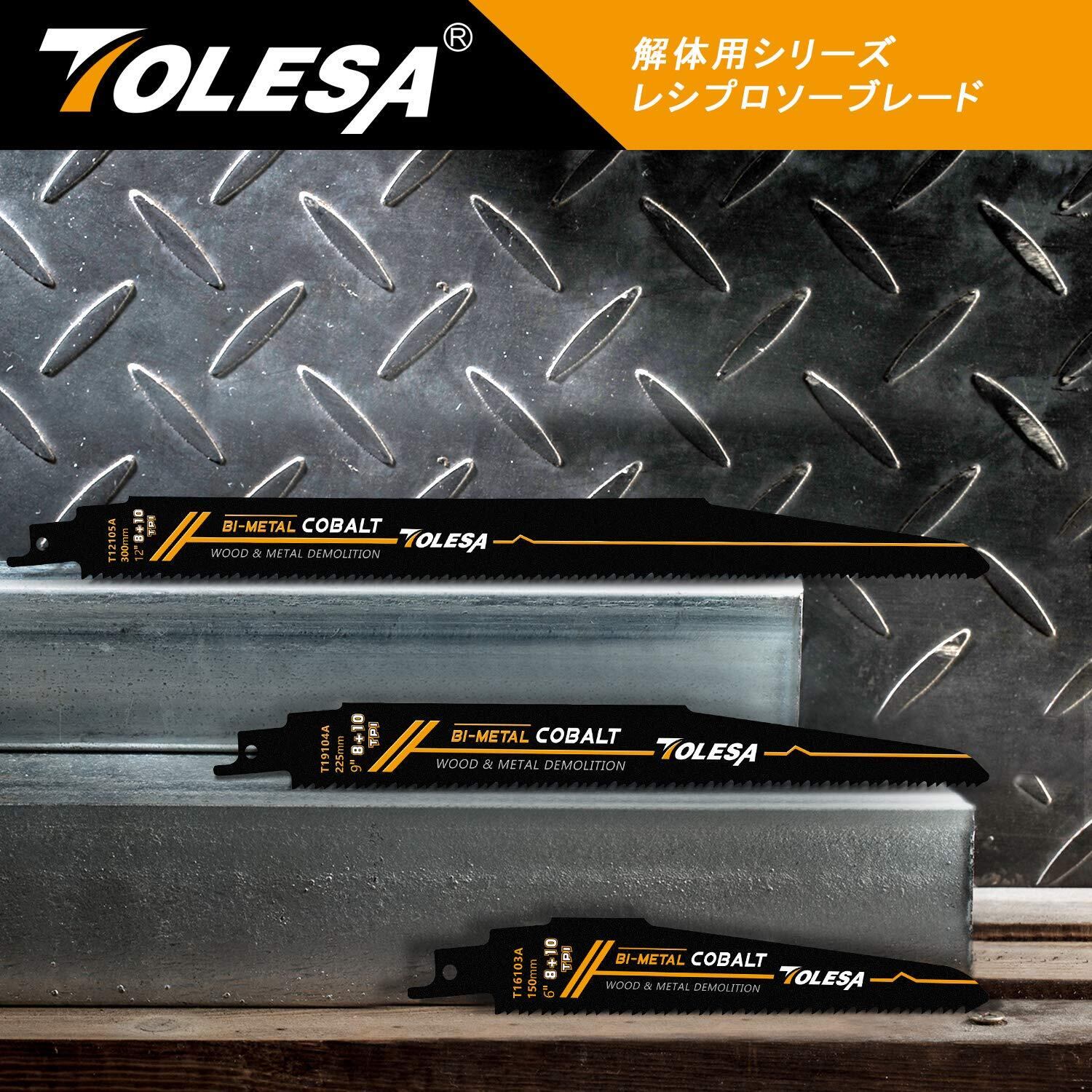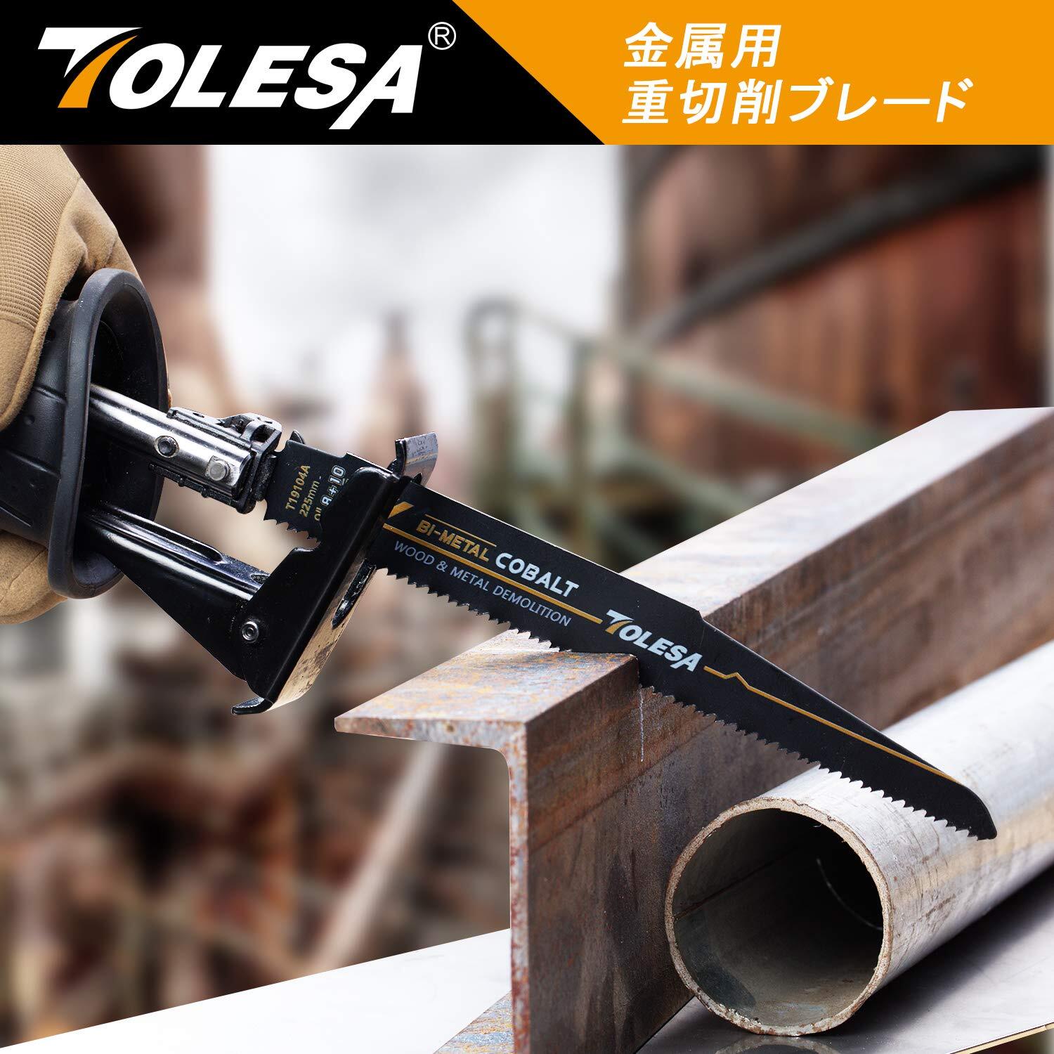 TOLESA レシプロソー替刃 8/10山 225mm バイメタル コバルト セーバーソーブレード 木工&金属 解体用 5枚入れ 釘付き木材 鉄 軟鋼板材 アルミ 黄銅 銅 塩ビ材
