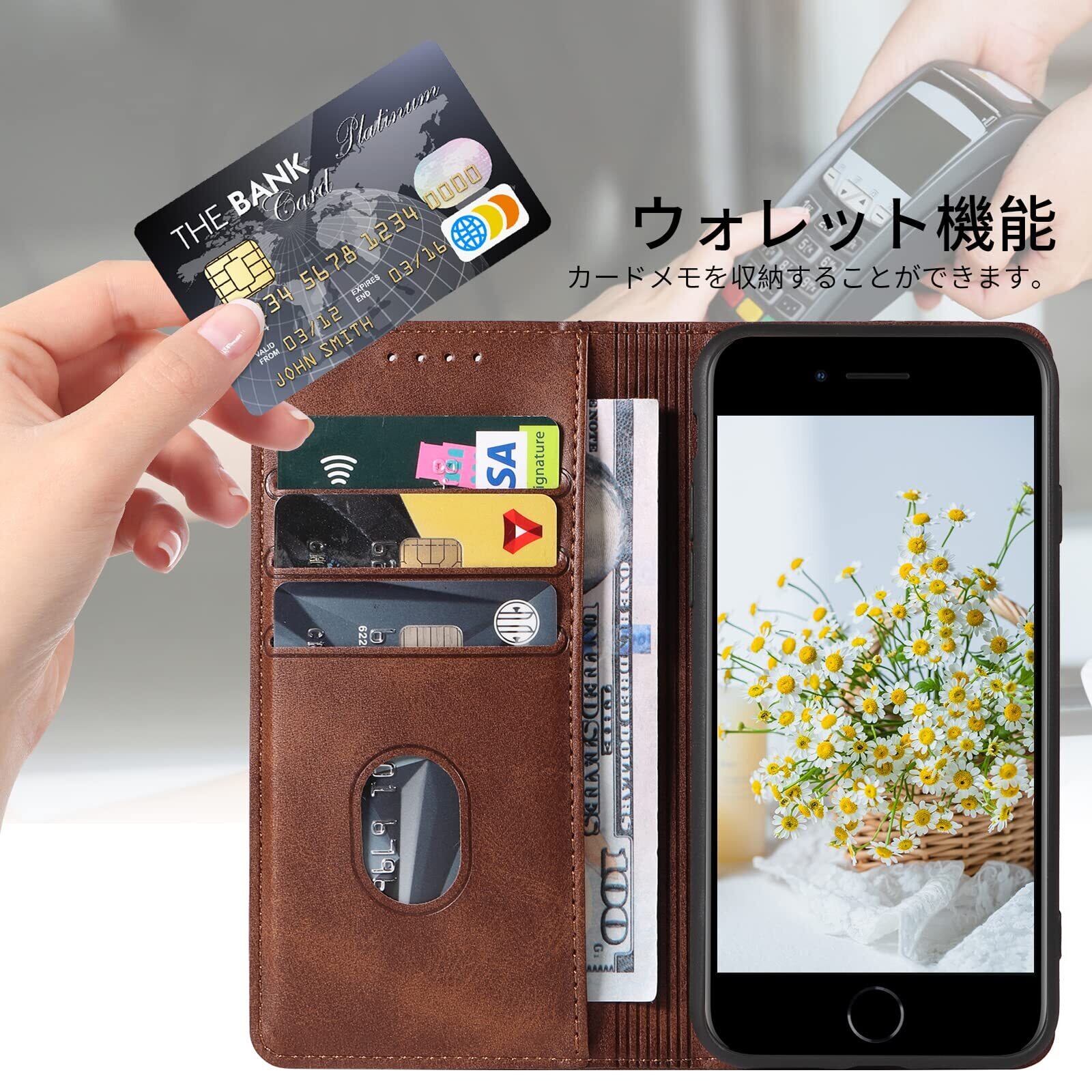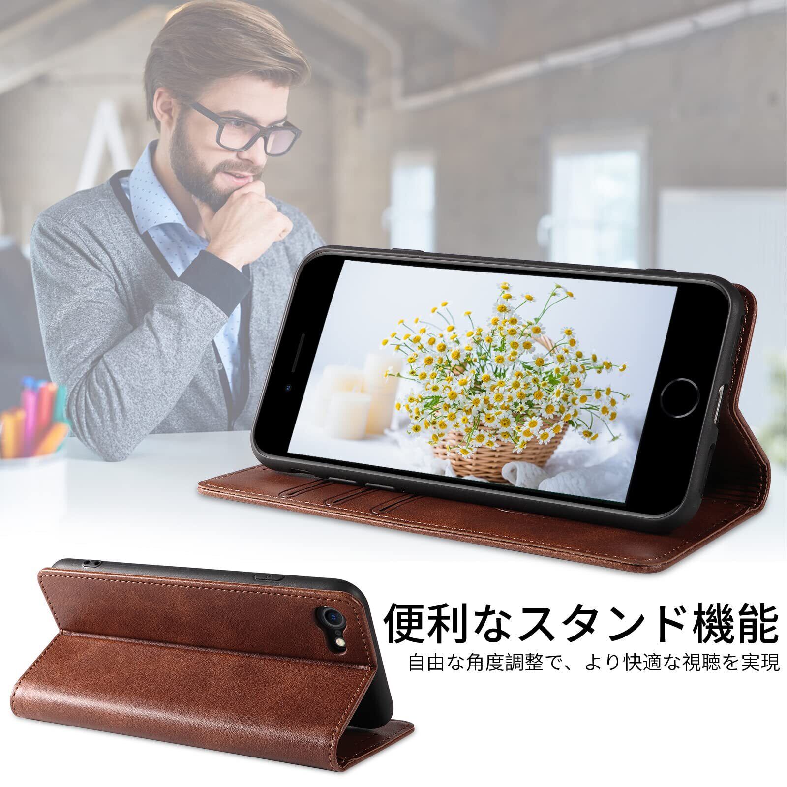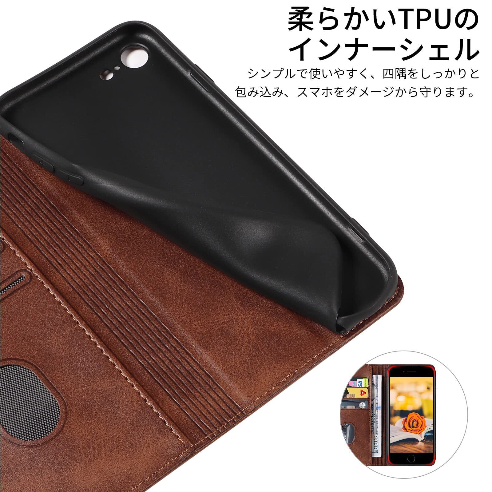 iPhone SE ケース 第2世代 第3世代 iphone8/7 ケース 手帳型 スマホケース 携帯カバー PUレザー カード収納ケース マグネット式 スタンド機能アイフォンse 4.7インチ対応 360度保護 PinLiSheng (ブラウン, iPhone SE2 iPhone SE3 iPhone8 iPhone7)