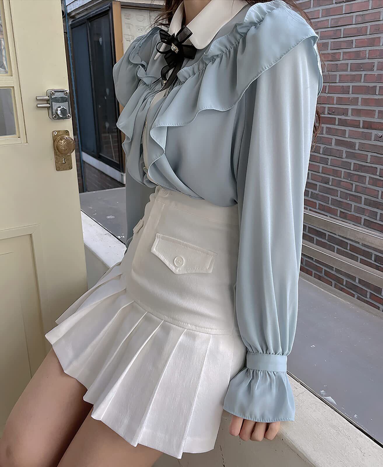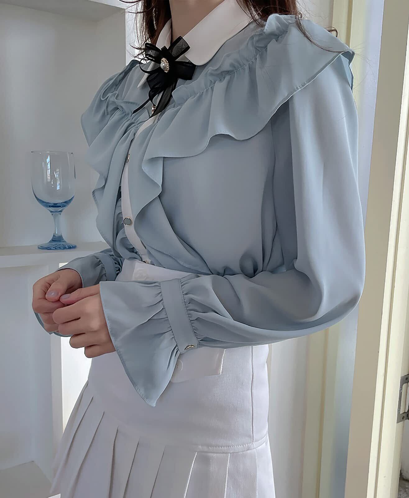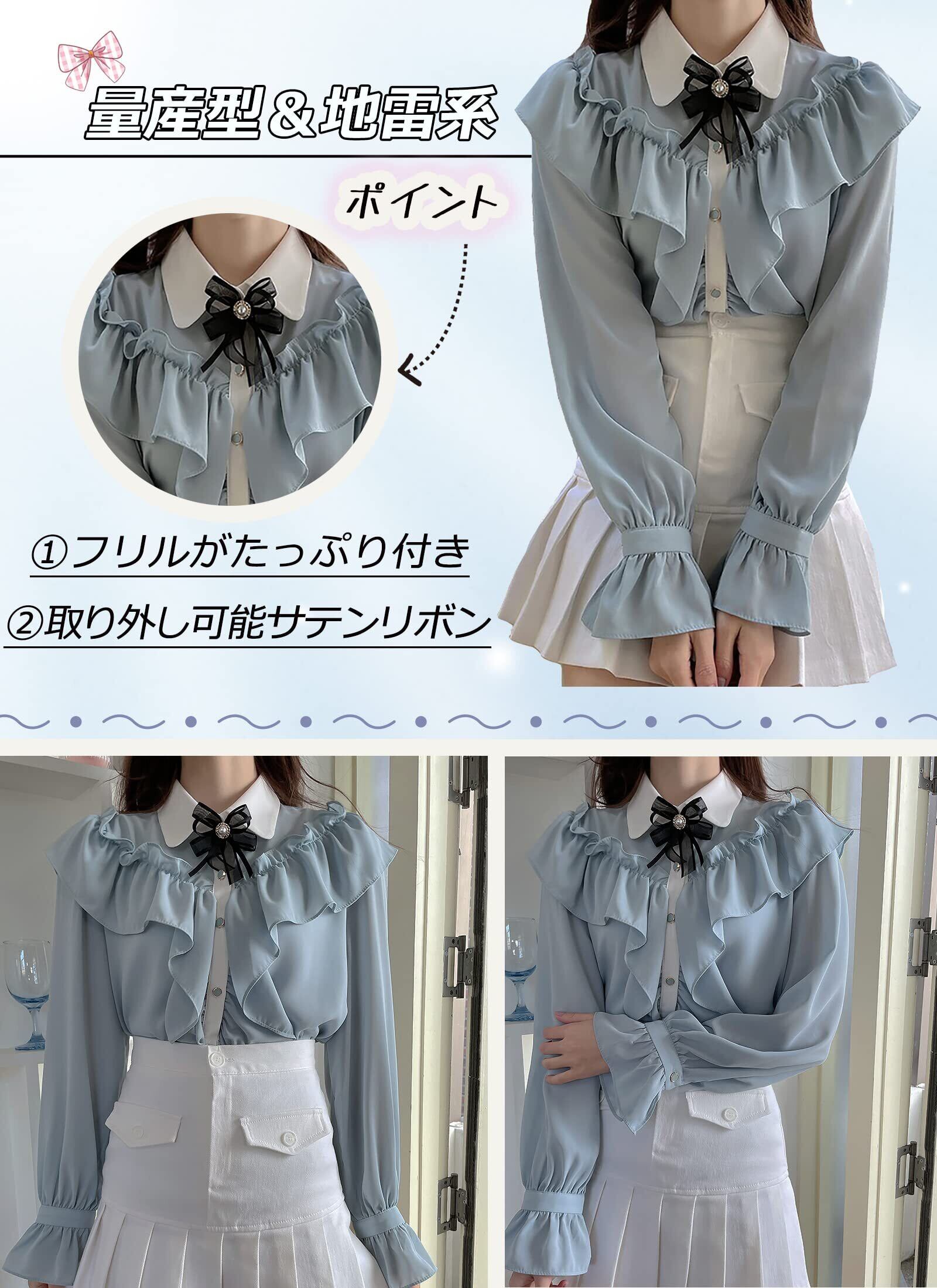 [TOWYYO] かわいい シフォン ブラウス 地雷系 量産型 リボン フリル レース レディース 長袖 レディースブラウス シャツ 大人 フェミニン 薄手 おしゃれ 春 夏 秋