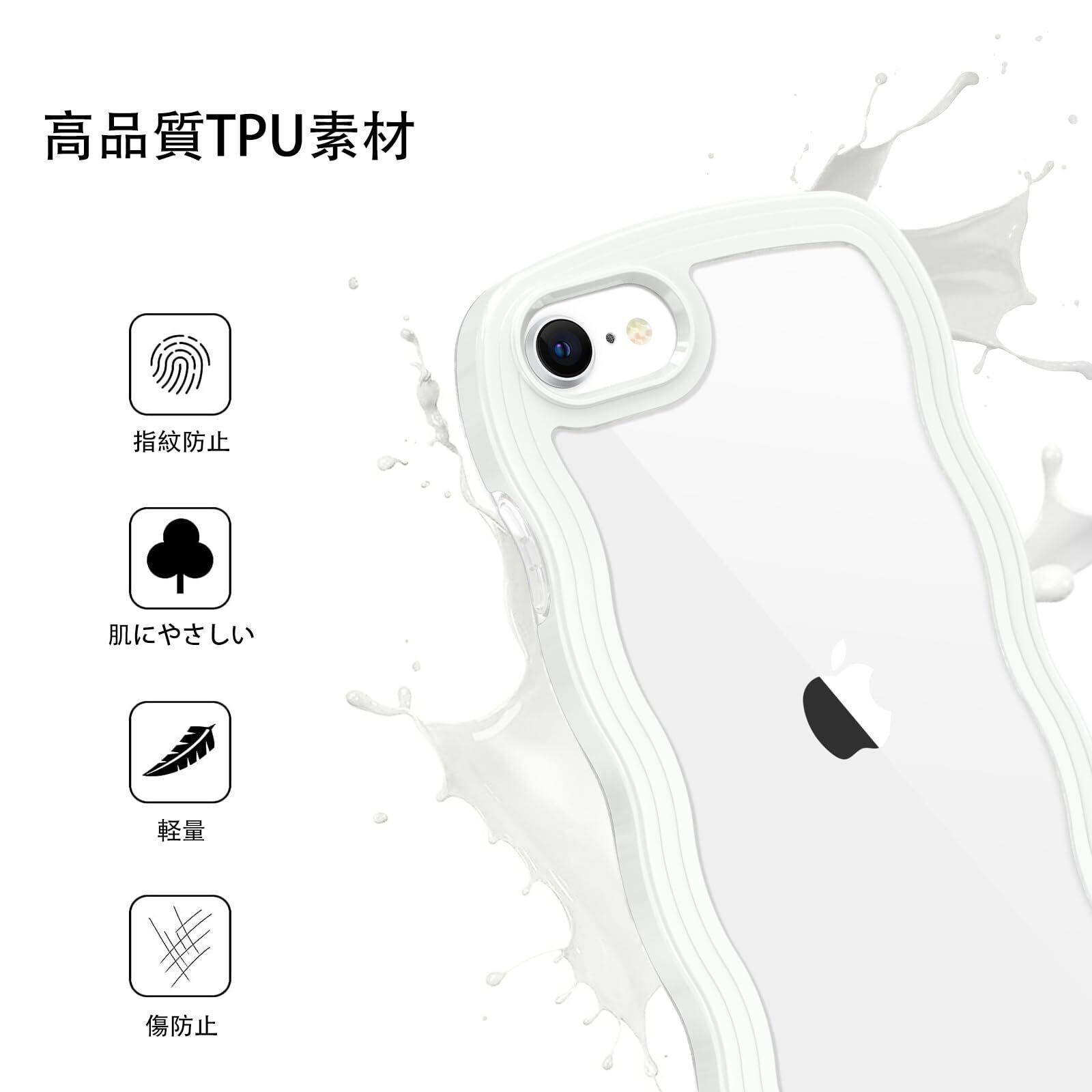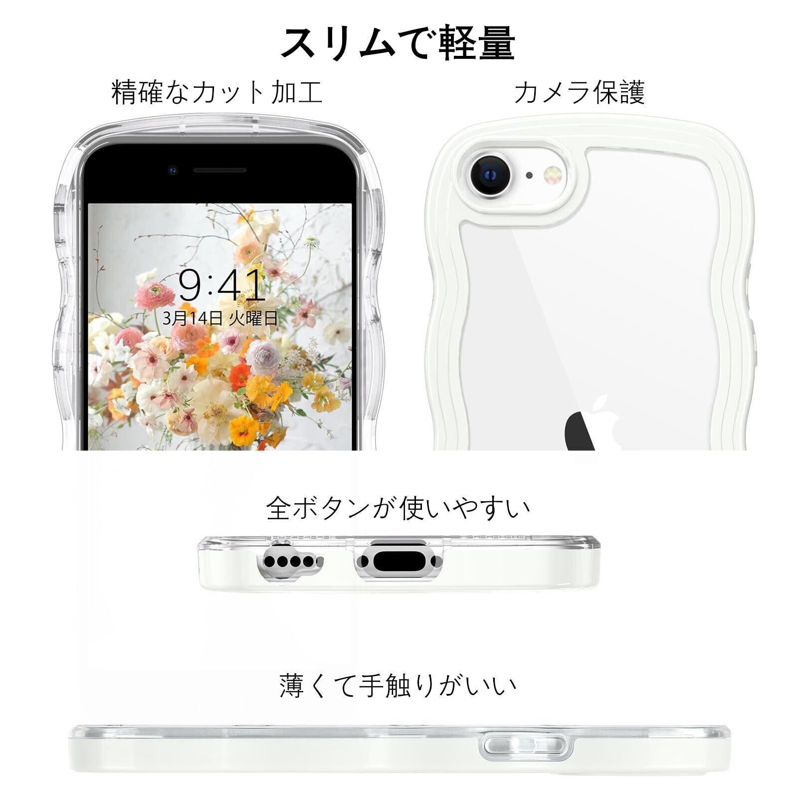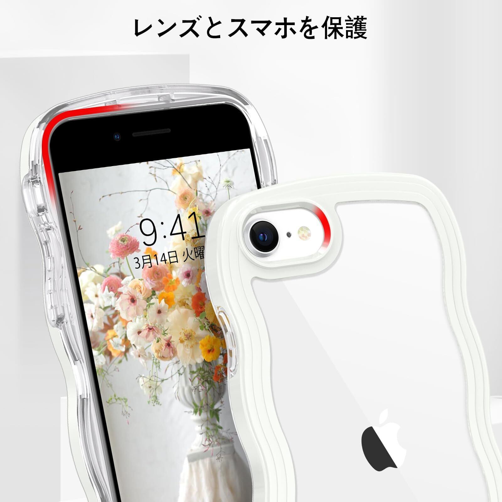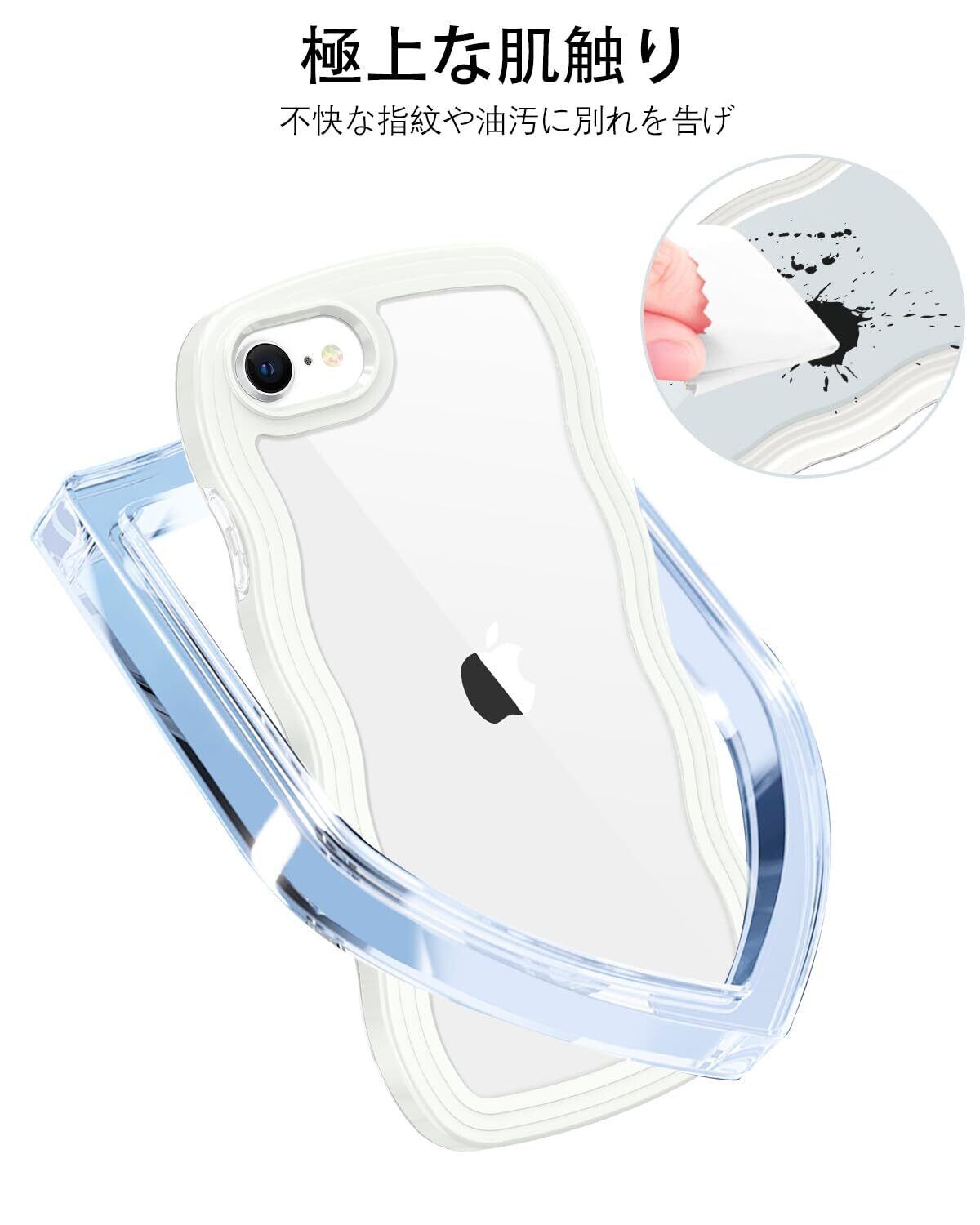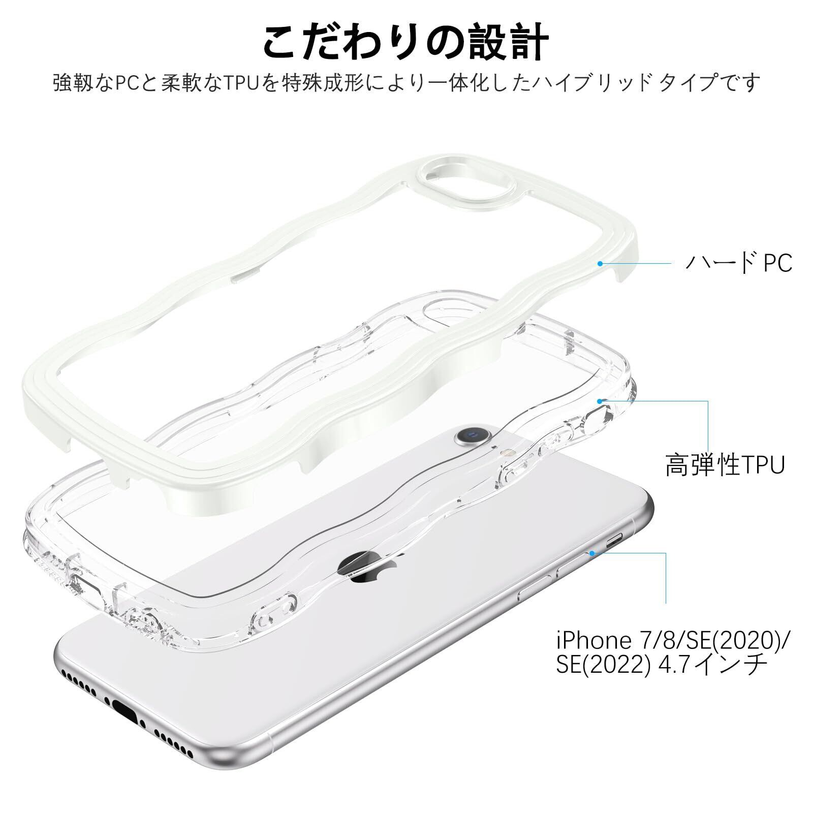 iPhone SE 第3世代 用/iPhone SE2 / iPhone8 / iPhone7 ケース クリア TPU+PC 韓国 可愛い ウェーブ ソフト 滑り止め 薄型 軽量 耐衝撃 おしゃれ スマホケース ストラップホール付き アイフォン SE3 SE2 8 7 ケース 4.7インチ ホワイト
