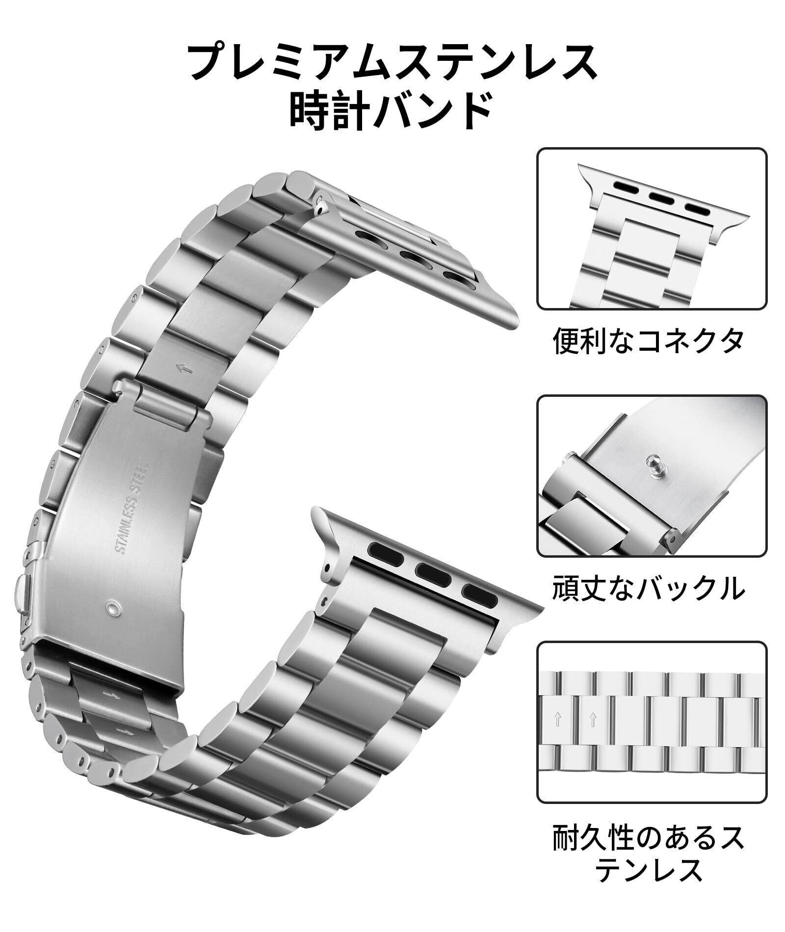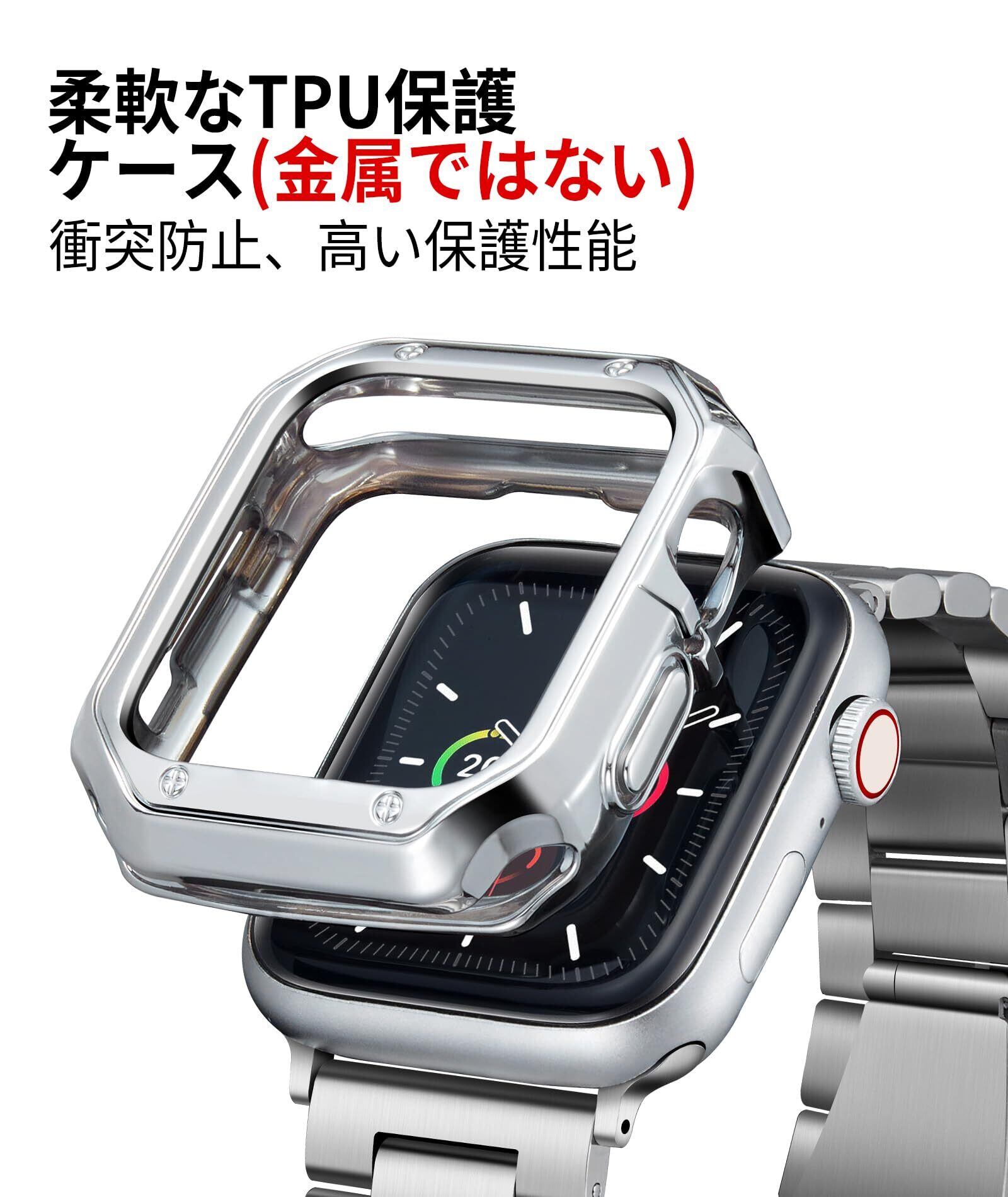 コンパチブル Apple Watch バンド 46mm 45mm 44mm 42mm 41mm 40mm 38mm コンパチブル アップルウォッチバンド ステンレス シルバー ポリッシュTPUケース コンパチブルiWatch ベルト Series 10/9/8/7/SE2/SE/6/5/4/3/2/1(45mm/44mm/42mm)
