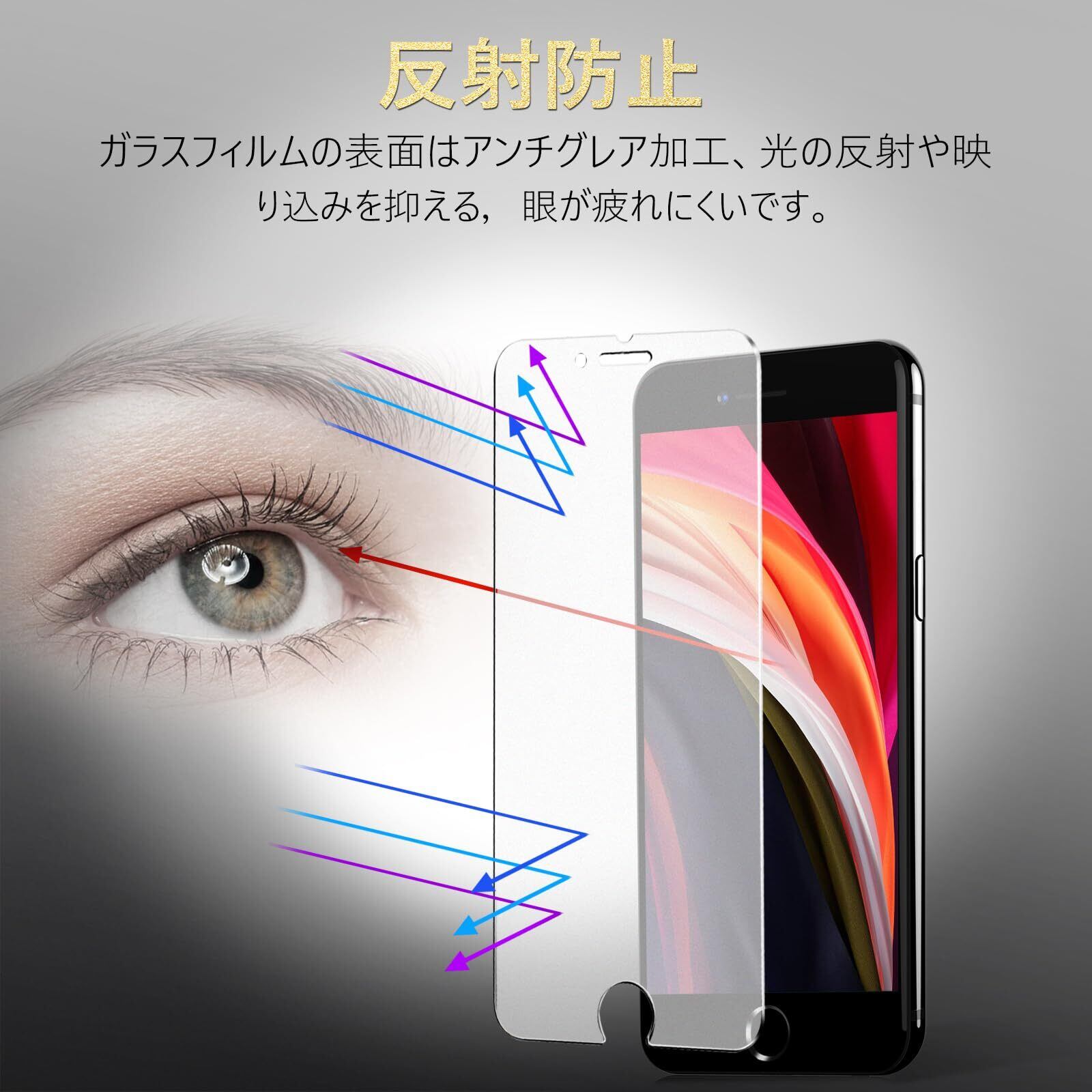【アンチグレア】 iPhone SE2 / SE3 ガラスフィルム アンチグレア iPhoneSE第2世代 / iPhoneSE第3世代 フィルム さらさら アイフォンSE 保護フィルム サラサラ いphone せ2 / せ3 用 強化ガラス 画面保護 シート 【指紋 防止/ゲーム/マット/反射 防止/滑り】 ガイド枠 付き