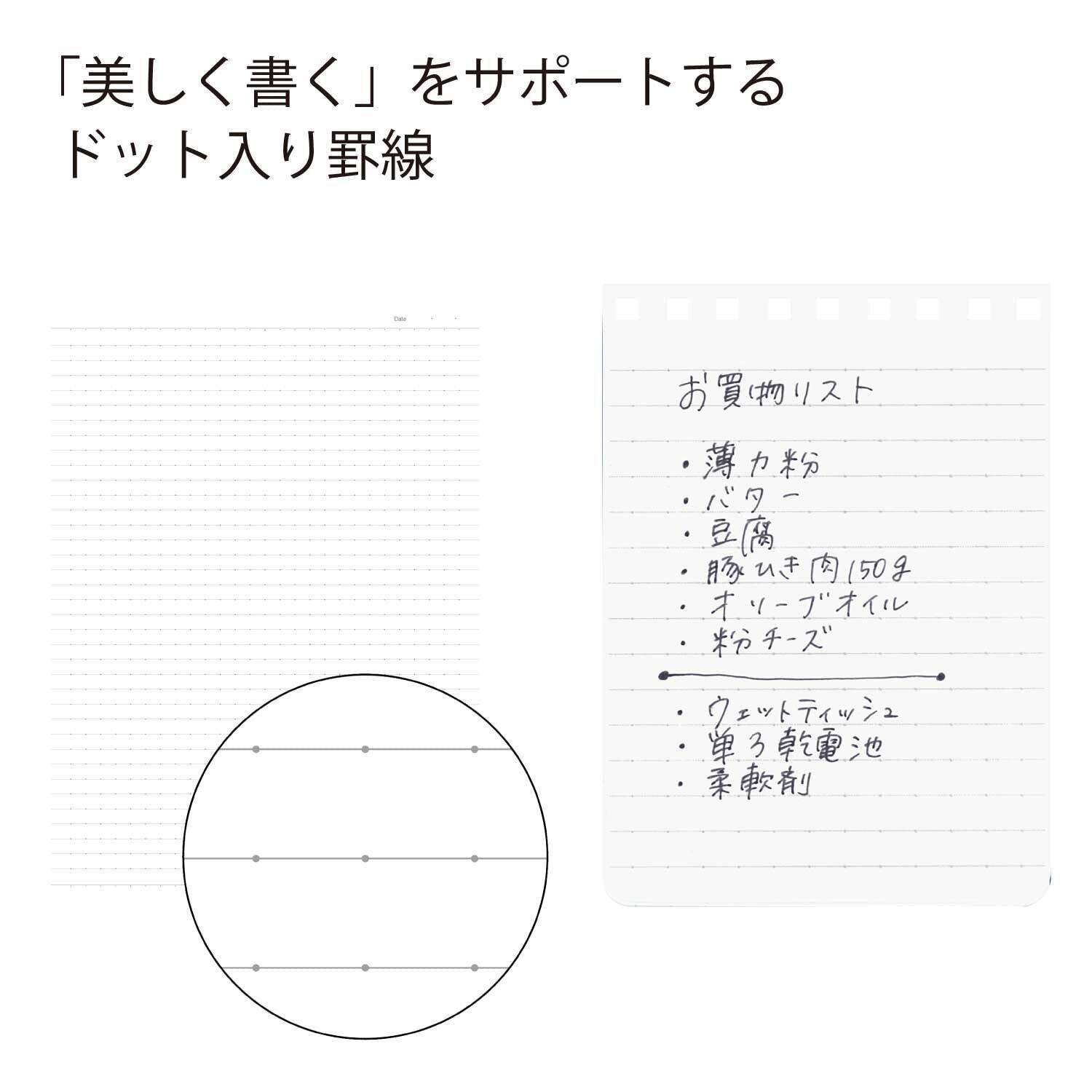 ・「美しく書く」をサポートするドット入り罫線を採用。