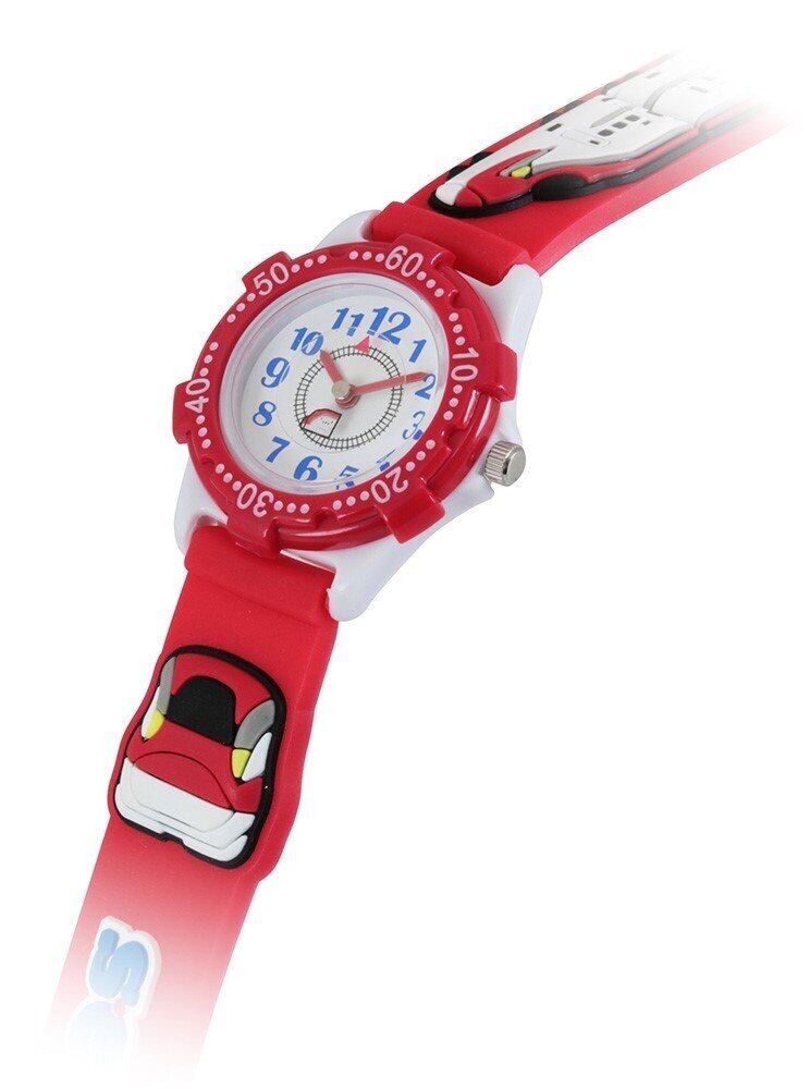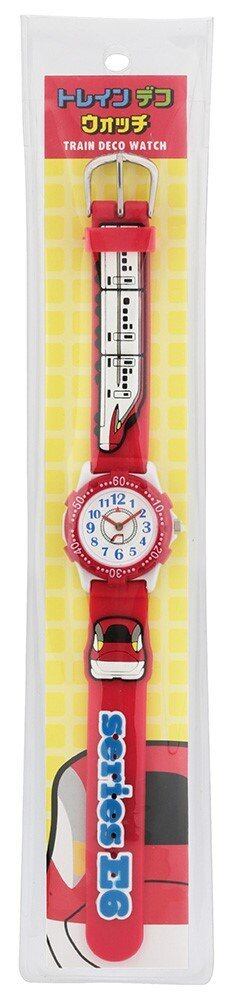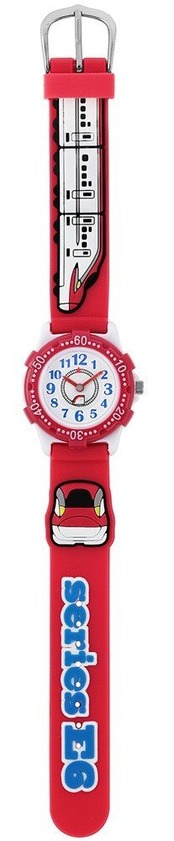 新幹線がかわいくデフォルメされた子供用時計です! 痛くないラバー素材! 文字盤の線路の上を秒針についた新幹線が走ります!