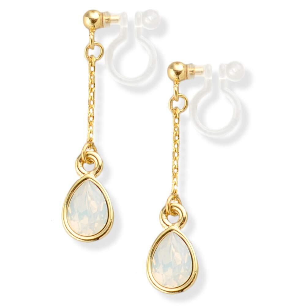 【仕様】カラー:クリア、グレージュ、モンタナ、パシフィックオパール、レッド、ホワイトオパール、パープル、イエロー、ピンク、シトラスグリーン、アクアブルー、ブラック/サイズ:約30mm、重さ(1ペア):ピアス、ノンホールピアスともに約2.3g/素材:スワロフスキークリスタル、金具は真鍮にゴールドめっき、ノンホールピアスパーツはポリカーボネイト