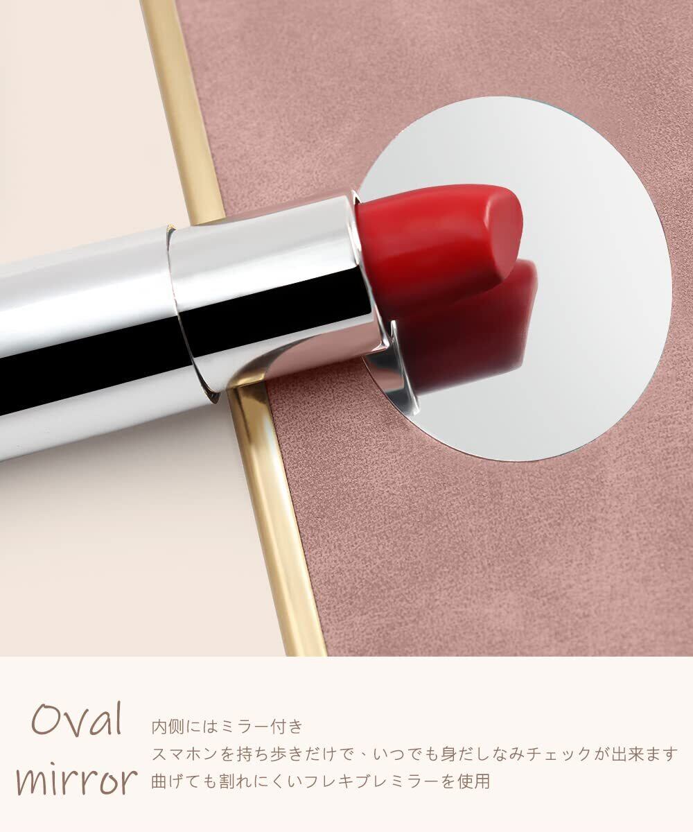 「便利なデザイン」 ①ミラー付き:背面の收纳部分には小さなミラーを配置。食事の後にリップを直したり、気になる前髪のチェックに使ったり...ちょっとした身だしなみの確認に便利なアイテムです。②マグネット付き:マグネット付いて、簡単に開け閉めができるから、片手で開きたい方にもとても便利です。 ③ストラップ付き:カバンの中入れておいてもすぐに携帯電話を見つけることができ、とてもり便利なデザインです 、もちろんケースから取り外すこともできて、お好みのストラップを入れることもできます。