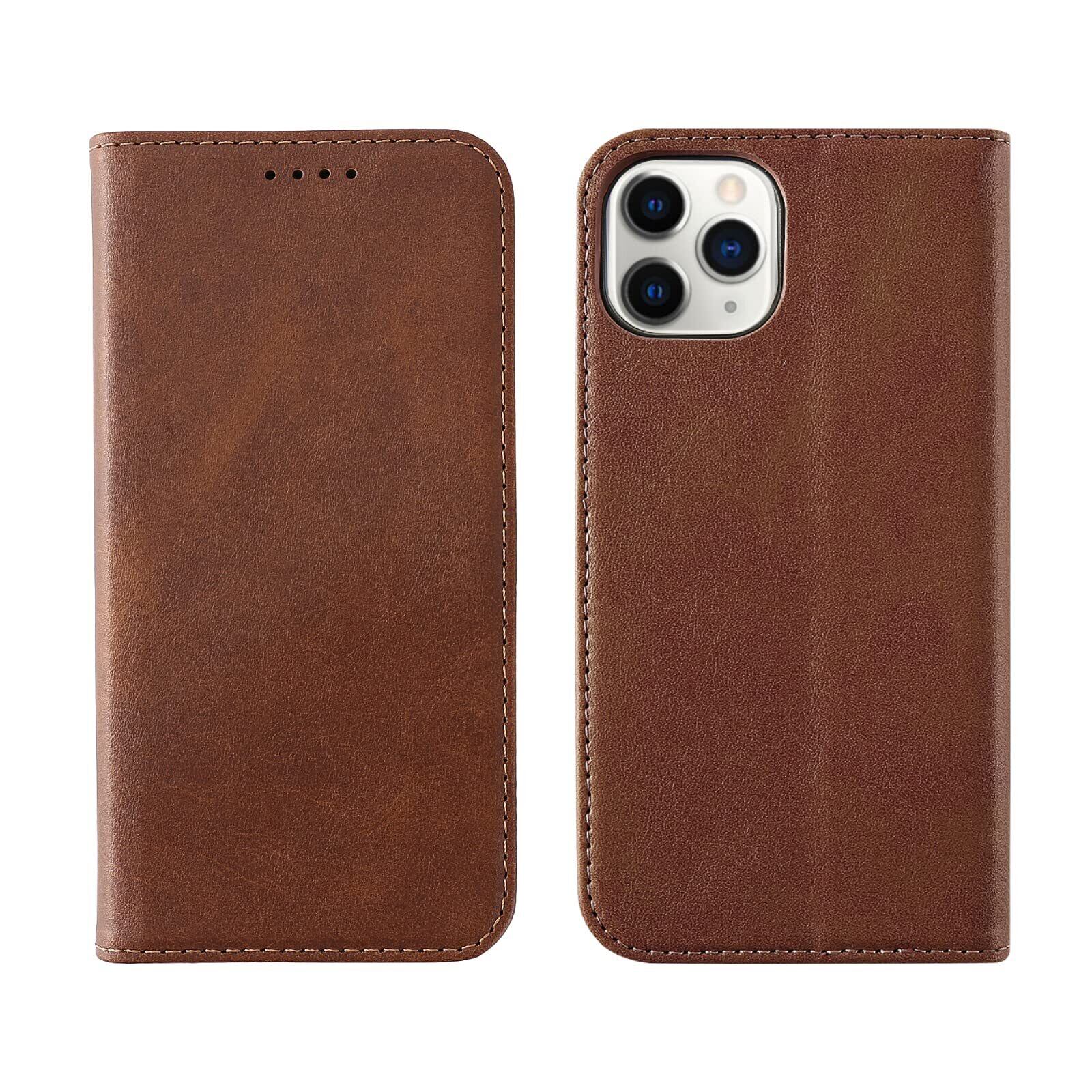 iPhone12/12Pro ダークブラウン PUレザー 手帳型ケース ベルトなし マグネット アイフォン ケース カバー iPhone12ケース 12Proケース カード収納