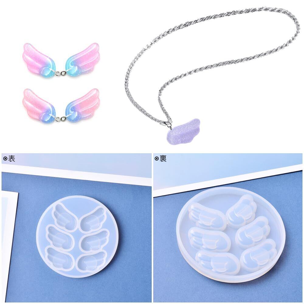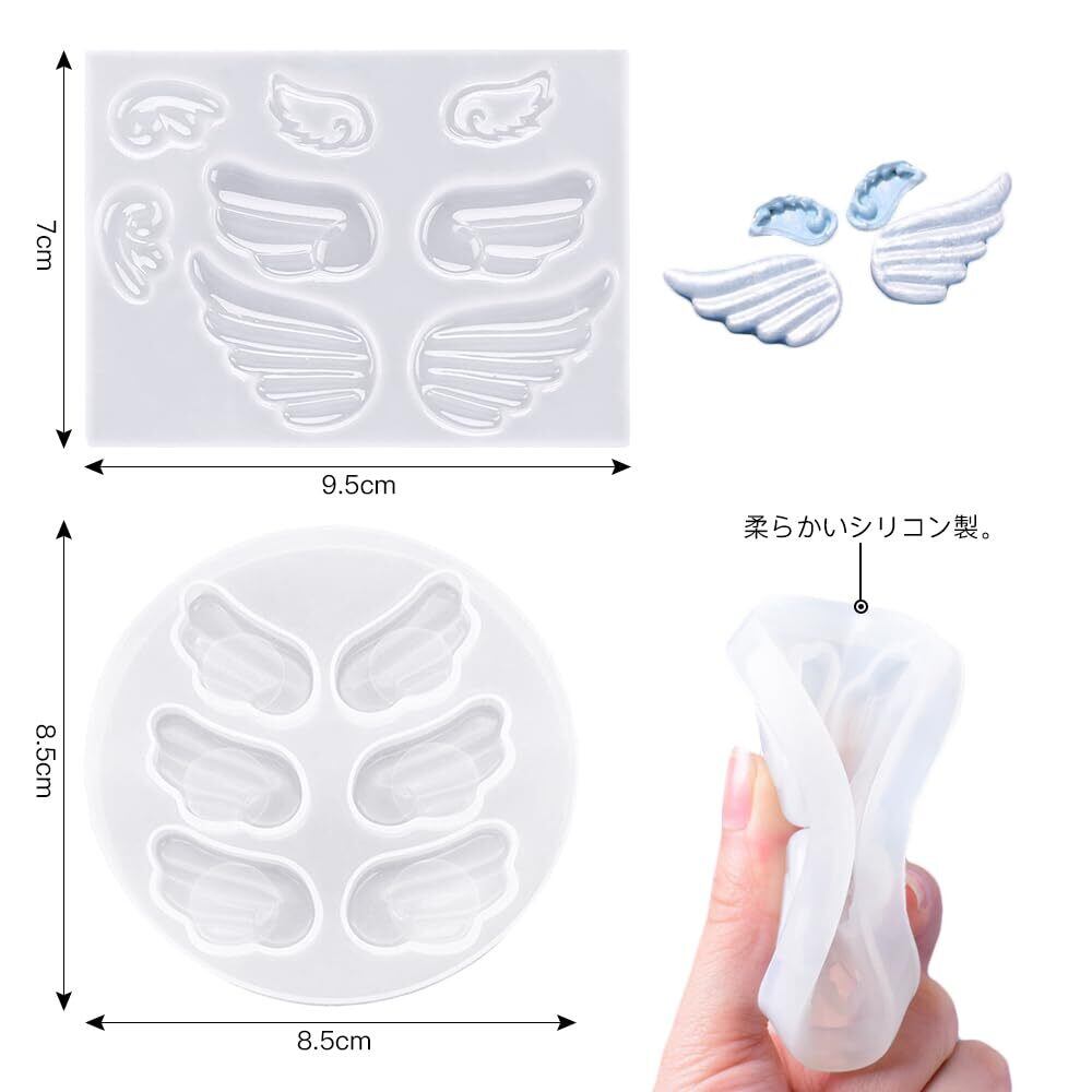 サムコス 天使の羽 シリコンモールド 2個セット 7種類 羽 翼形 立体 シリコン型 レジン モールド DIY 手作り キーホルダー ネックレス ピアス ヘアピン アクセサリー パーツ 装飾 作成 抜き型